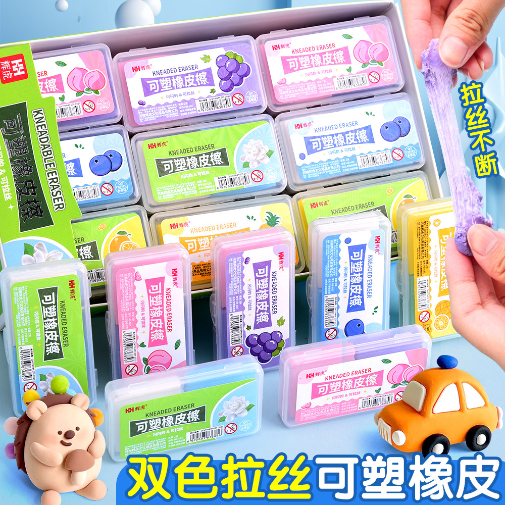 儿童可塑橡皮擦拉丝橡皮可变色塑形软像皮幼儿园软泥双色高颜值素描高光绘图绘画盒装彩色可塑软橡皮学习文具