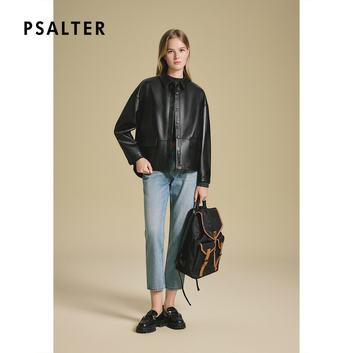 诗篇专选翻领落肩绵羊皮纯色真皮夹克皮衣2025款