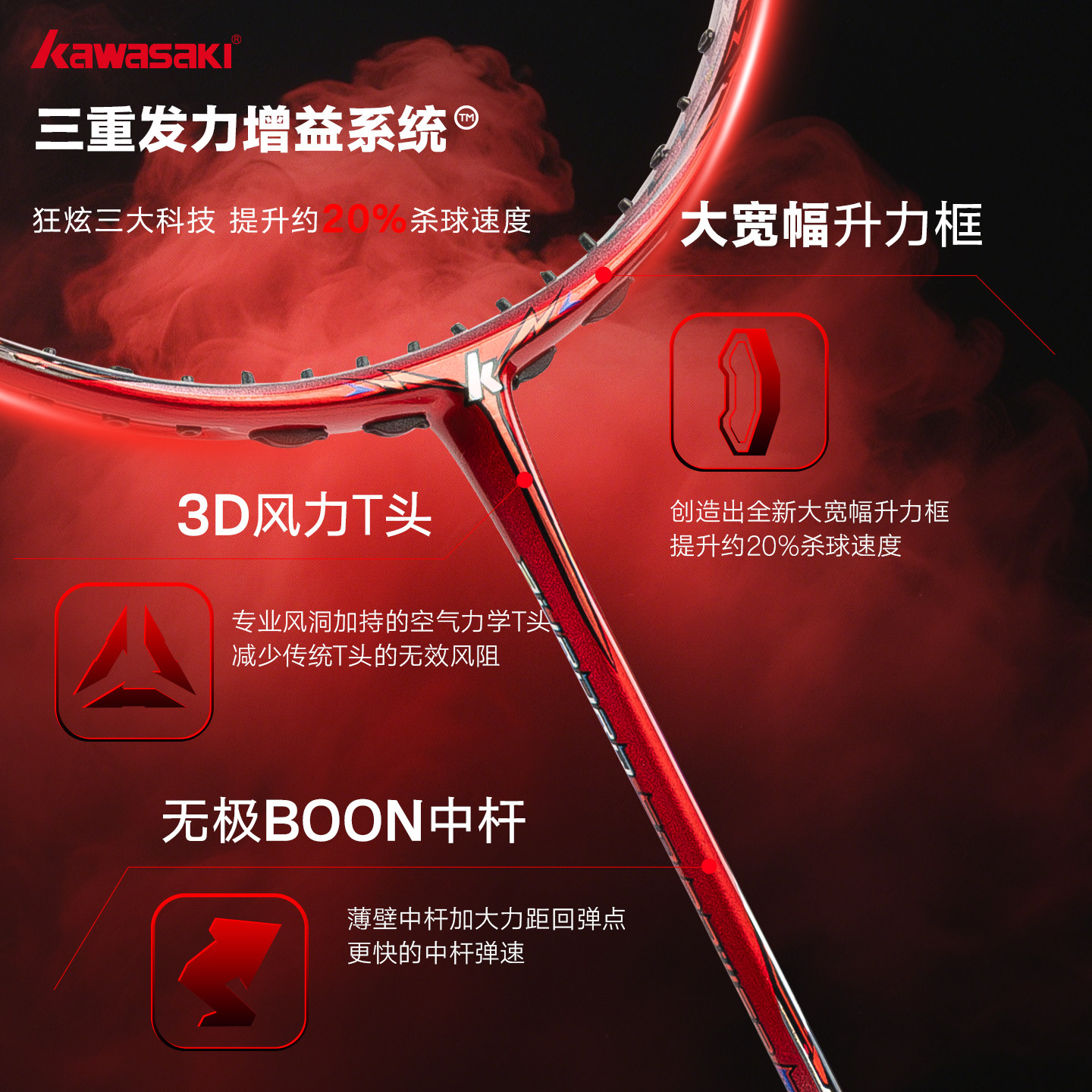 川崎极光50Power Max西装暴徒羽毛球拍高磅全碳素4U专业进阶比赛