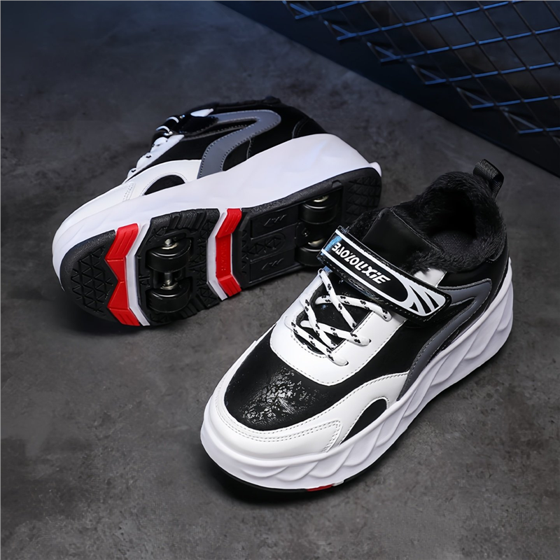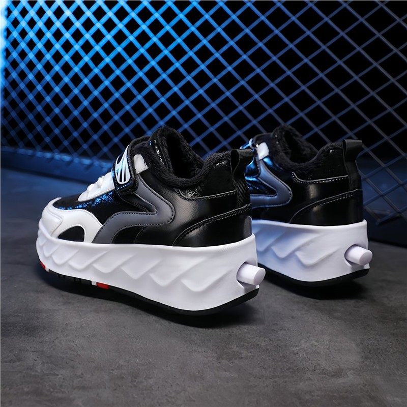 暴走鞋男童冬季加绒溜冰运动鞋飞行四轮可收缩儿童隐形运动轮滑鞋