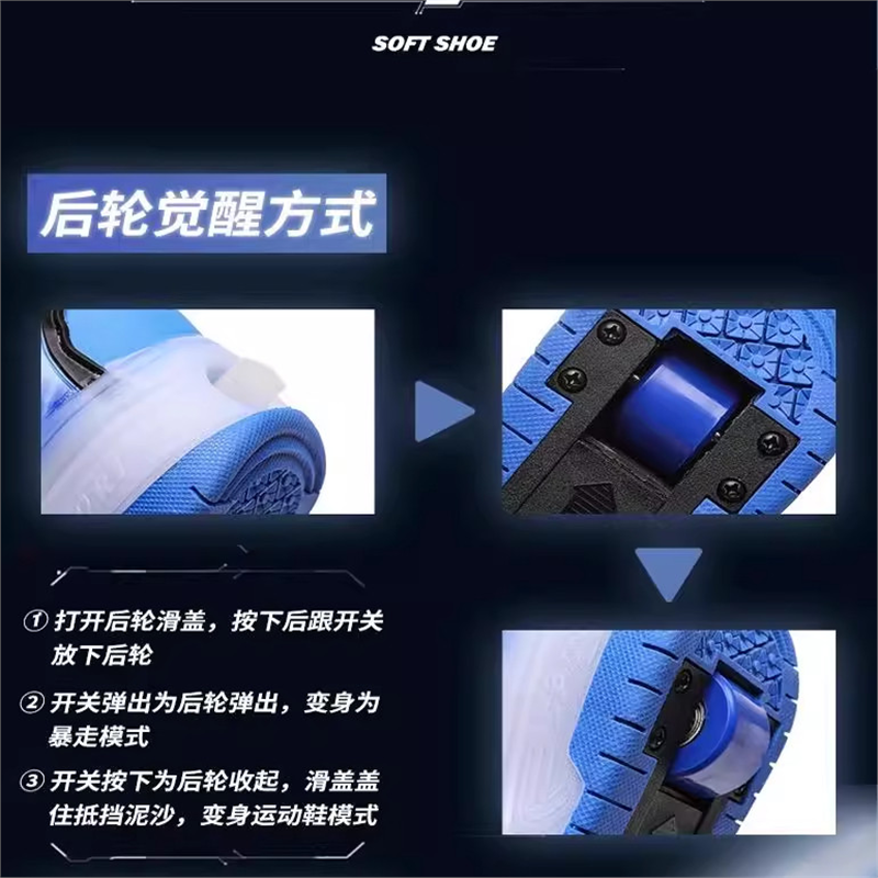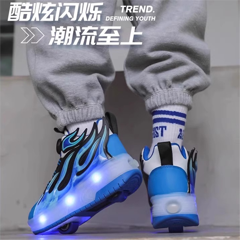 儿童运动暴走鞋秋冬隐形双轮可收缩男童溜冰飞行鞋运动轮滑鞋女