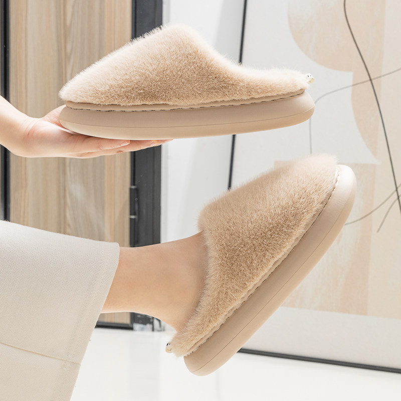 红豆踩屎感棉拖鞋女士秋冬季室内家居2025新款毛绒保暖情侣棉拖男