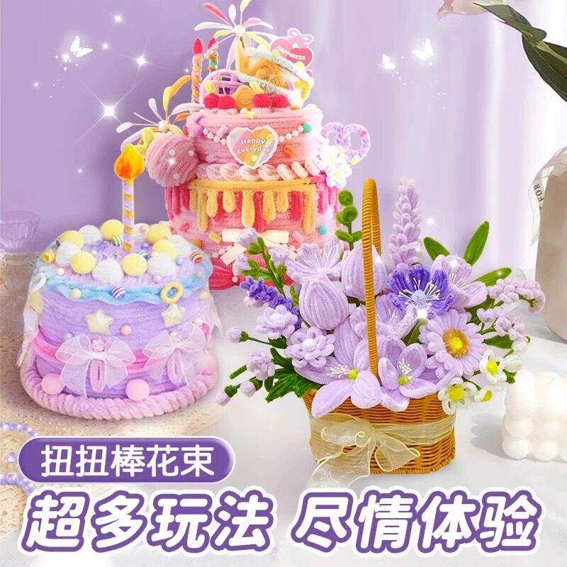 扭扭棒儿童手工diy材料包特密毛根扭扭棒花束手工diy儿童玩具编织花束女孩全套套装发箍发簪收纳包手工扭扭棒