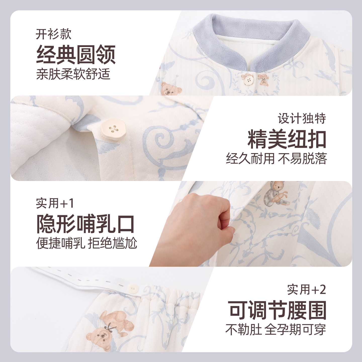 孕妇睡衣冬月子服外穿冬季加厚三层加厚纯棉产妇喂奶哺乳衣家居服