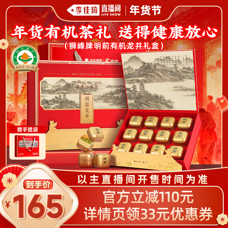 【李佳琦年货节爆品返场】狮峰牌有机明前龙井绿茶叶礼盒装送长辈