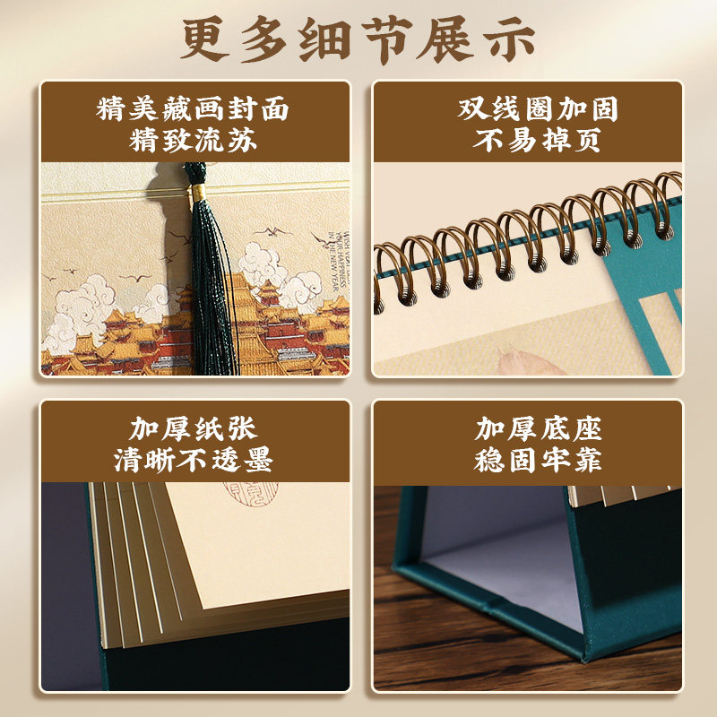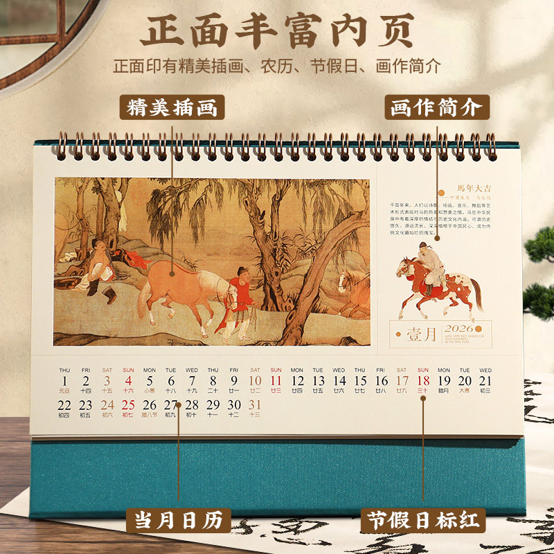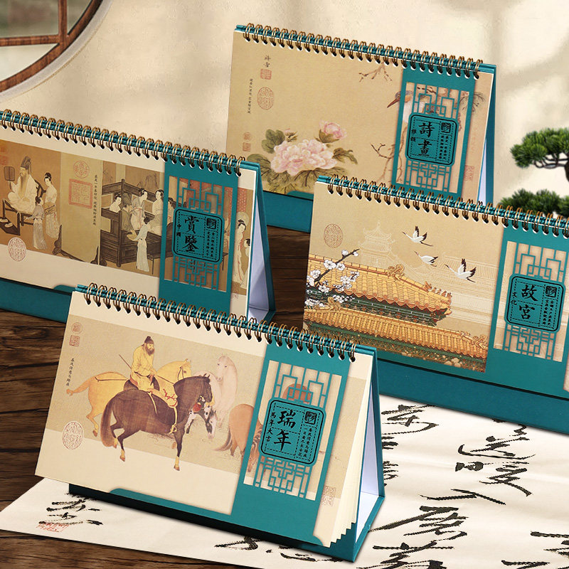 台历2026年新款孔雀蓝故宫文创日历2025中国国画文化马年复古商务办公桌面创意摆件公司广告logo定制企业礼品