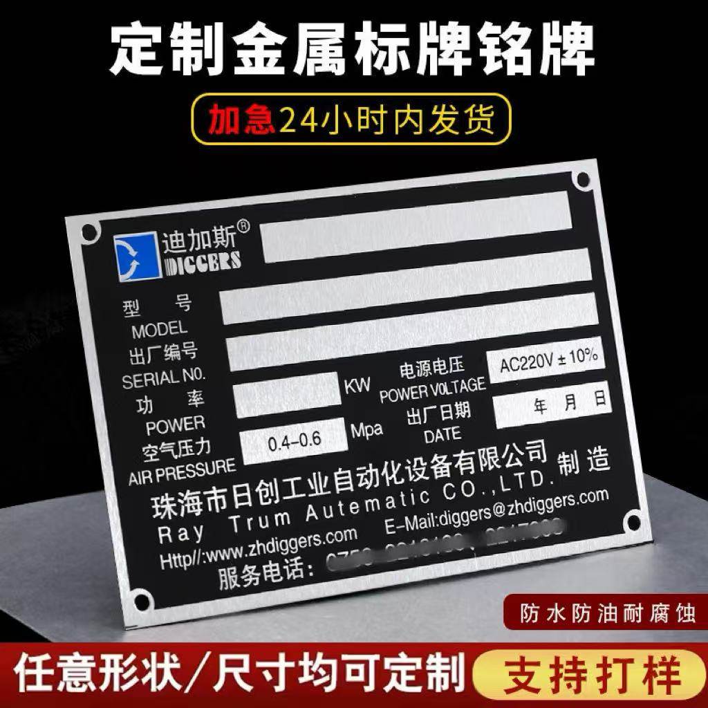 铭牌定制设备机械面板金属铝质标牌定做按钮标识面板铝牌制作电缆不锈钢腐蚀吊牌空白激光PVC打标签贴锌消防