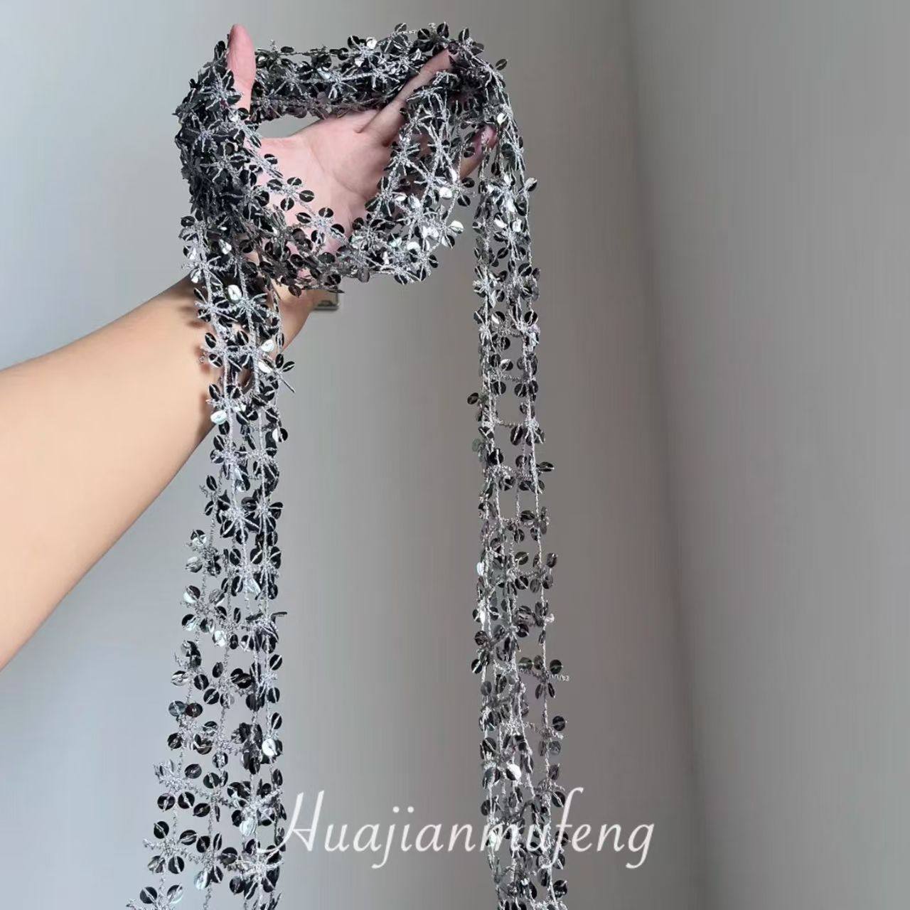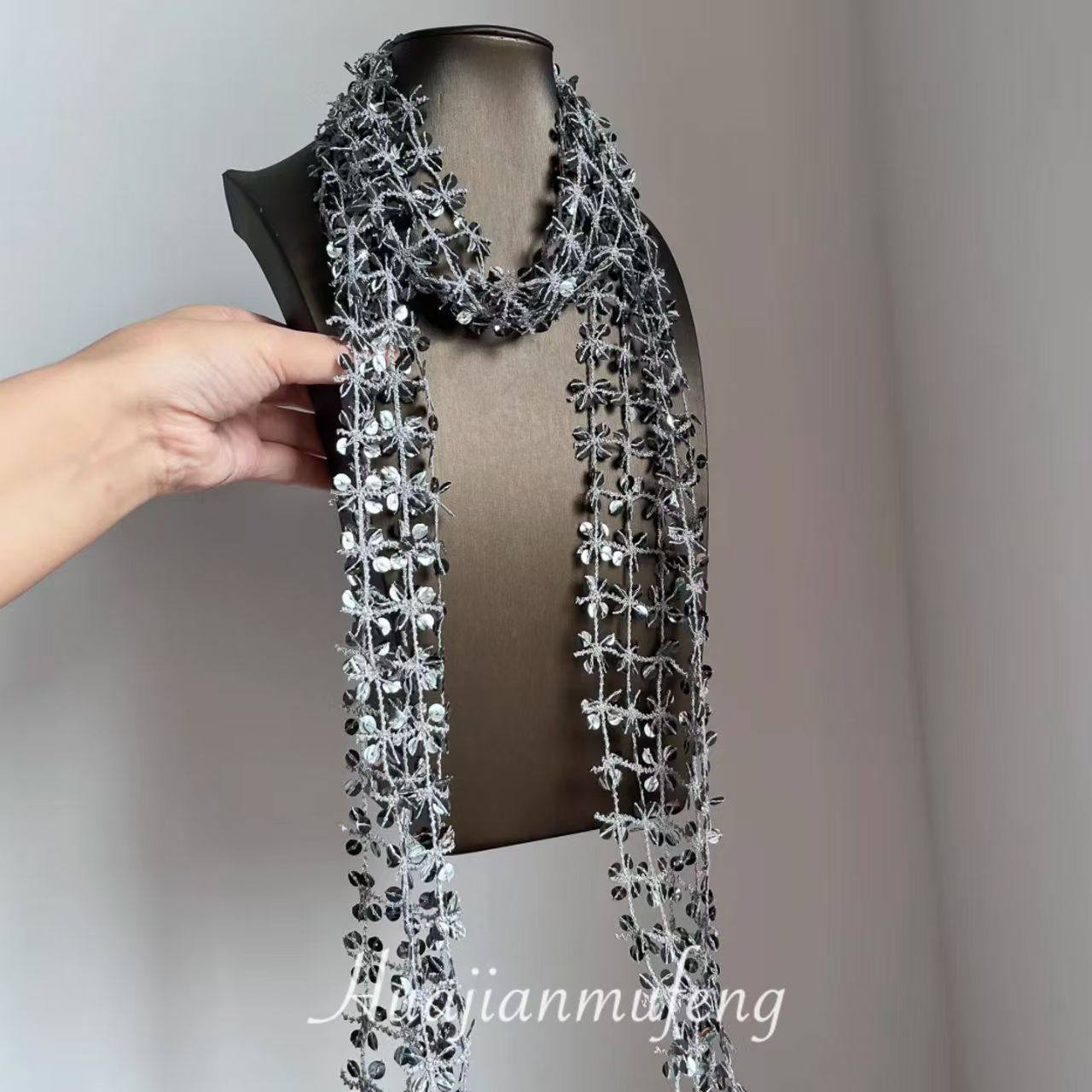 超吸睛~银色亮片编织镂空围巾项链女时髦小众设计丝巾围脖配饰潮