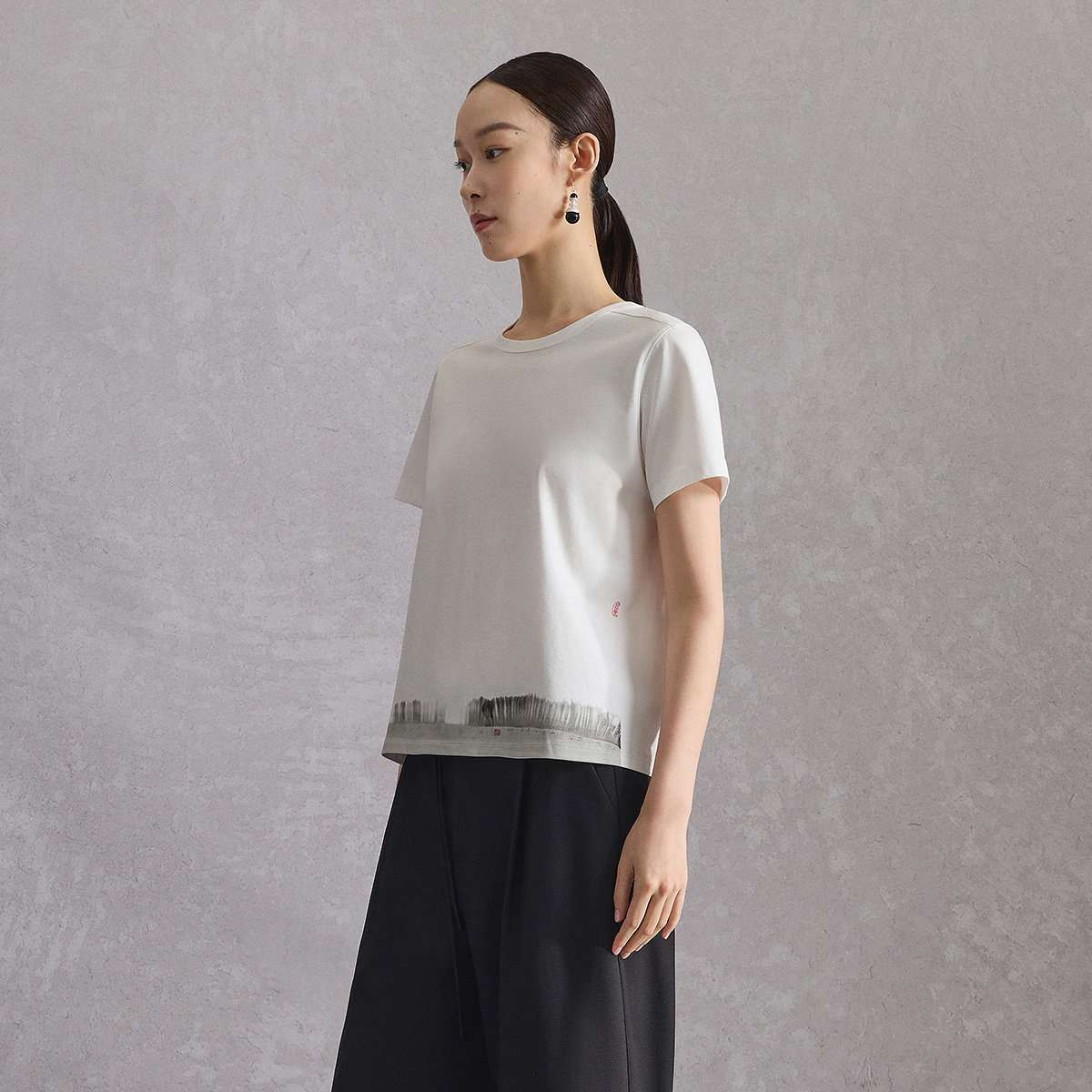 【艺术家联名】商场同款naivee纳薇水墨画合体棉短袖T恤女