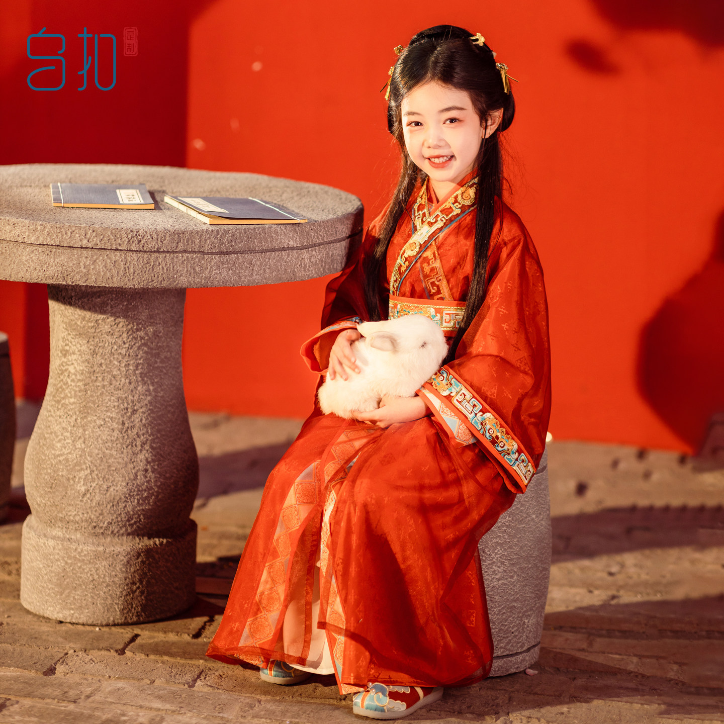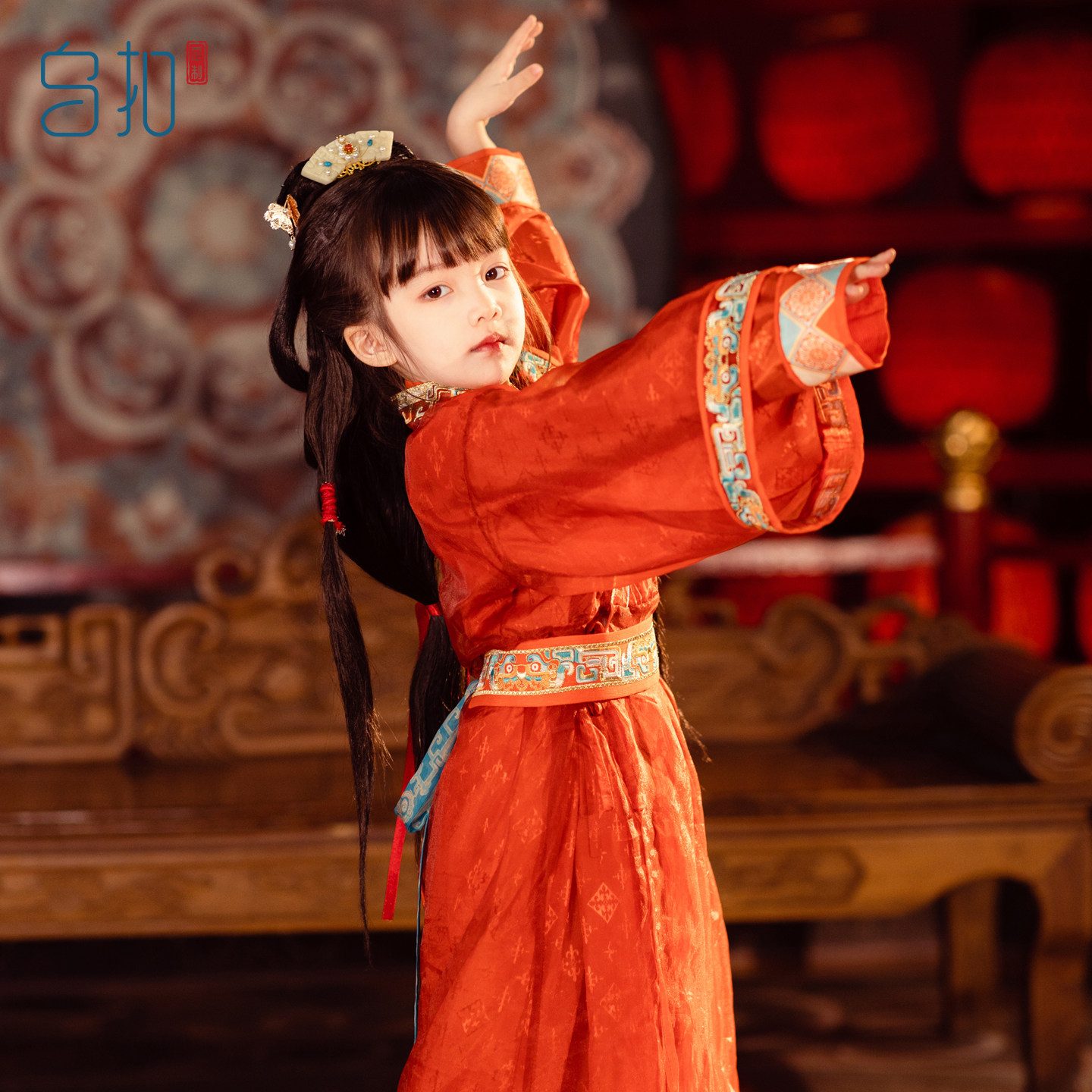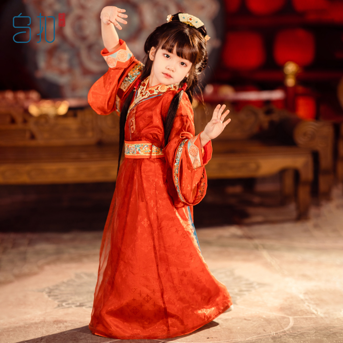 乌扣.汉服女童战国袍春秋儿童中国风亲子直裾袍套装春秋古风