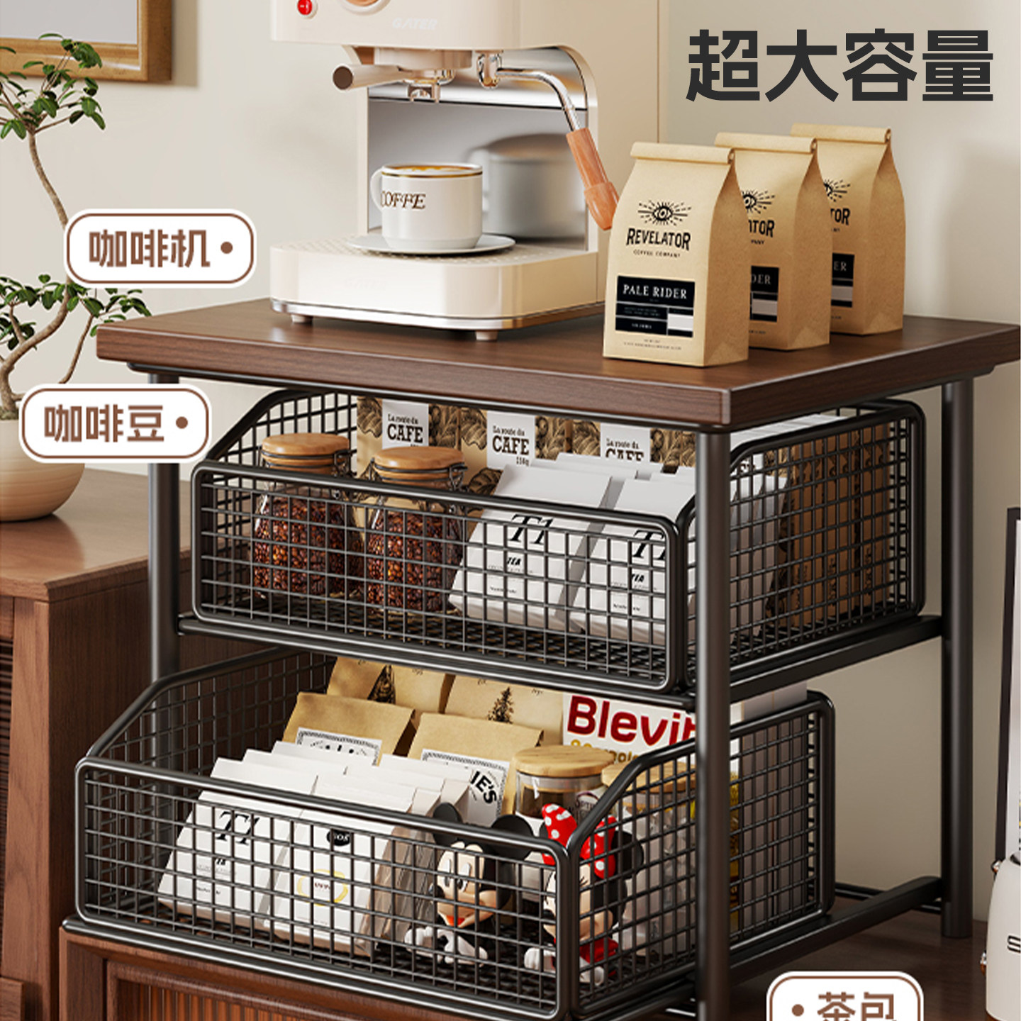 咖啡机置物架桌面多层可抽拉置物架台面茶杯茶具水杯架多功能收纳