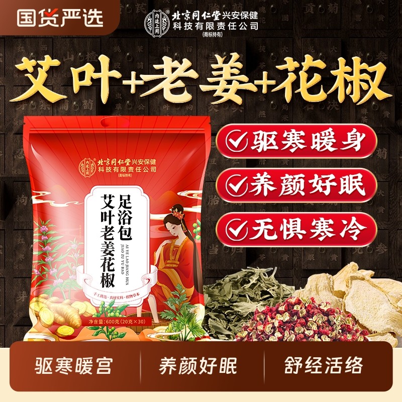 北京同仁堂艾叶干艾草泡脚药包中药花椒老姜片足浴包祛湿驱寒草本