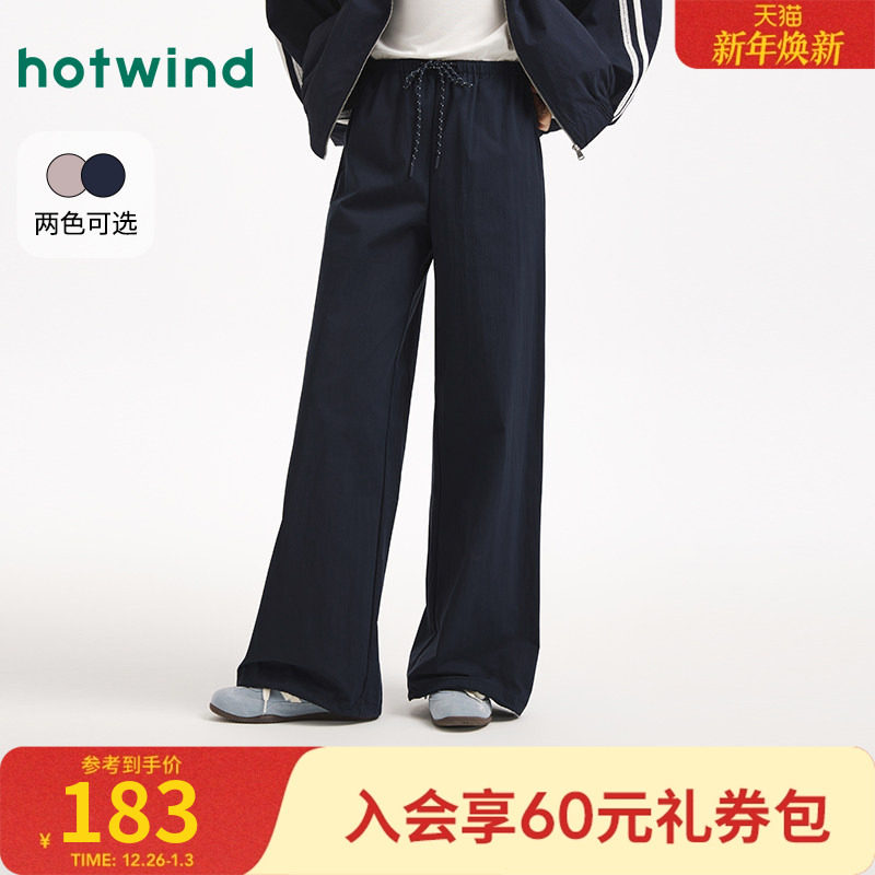 热风2025年秋季新款女士简约休闲阔腿束脚裤舒适垂顺
