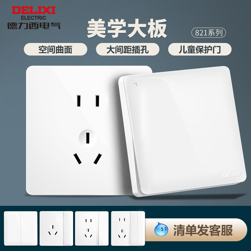 德力西开关插座面板二三插斜五孔插座86型墙壁开关821系列 白