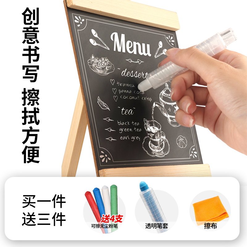 可擦写小黑板DIY创意手绘广告牌标价牌价目表奶茶店手写菜单摆摊价格展示牌桌面木质立式桌牌餐饮吧台点餐牌