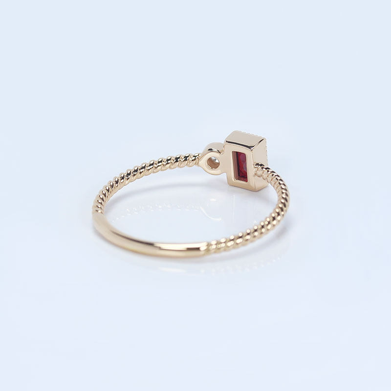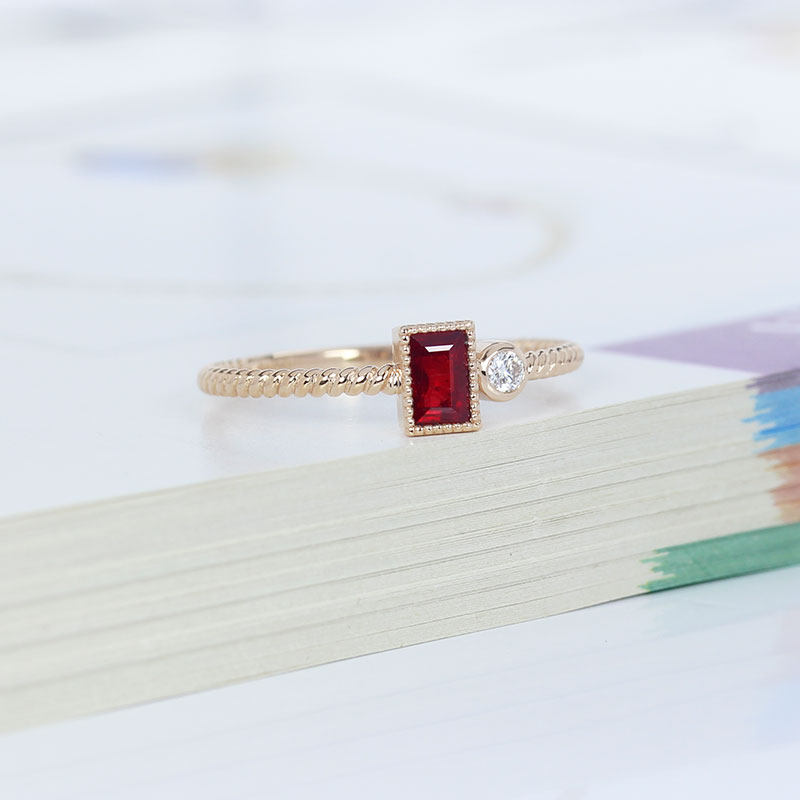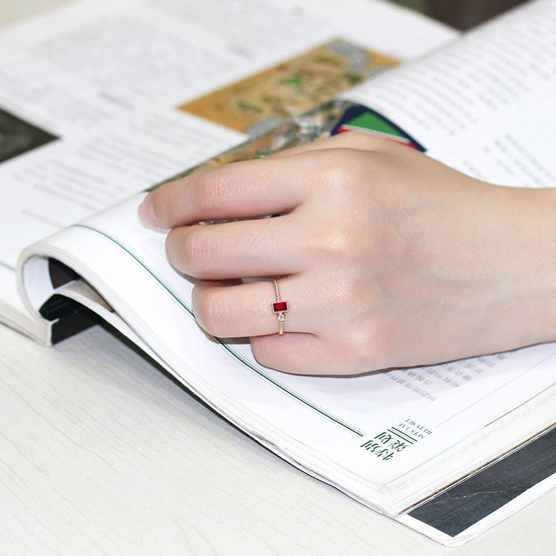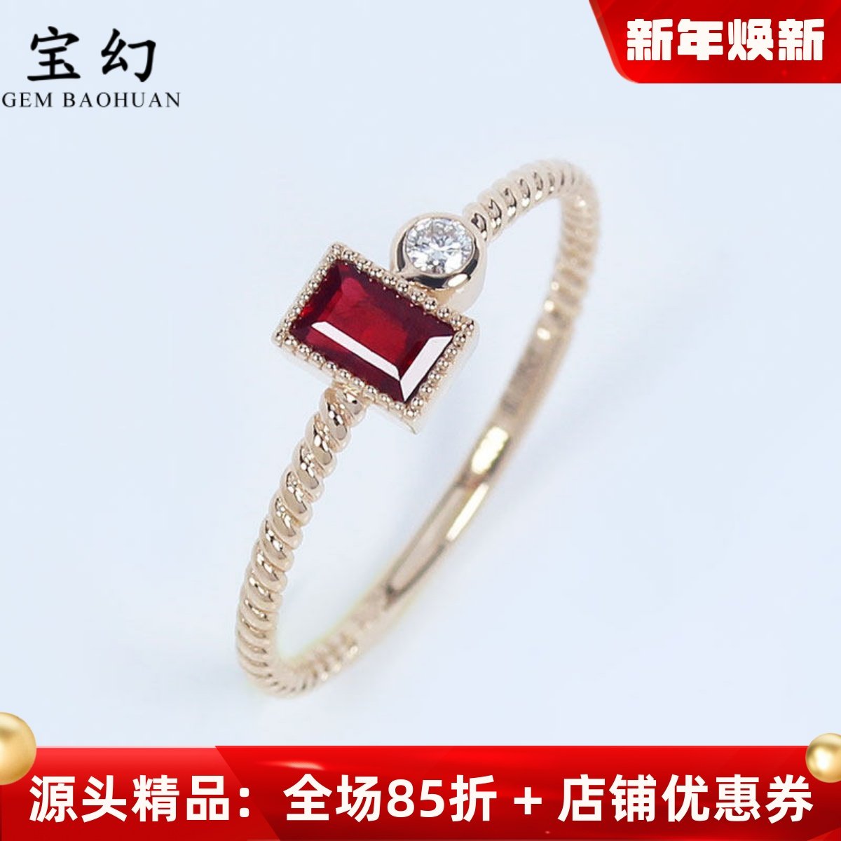 18K玫瑰金天然鸽血红宝石钻石麻花复古小戒指 彩金手饰尾戒排戒女