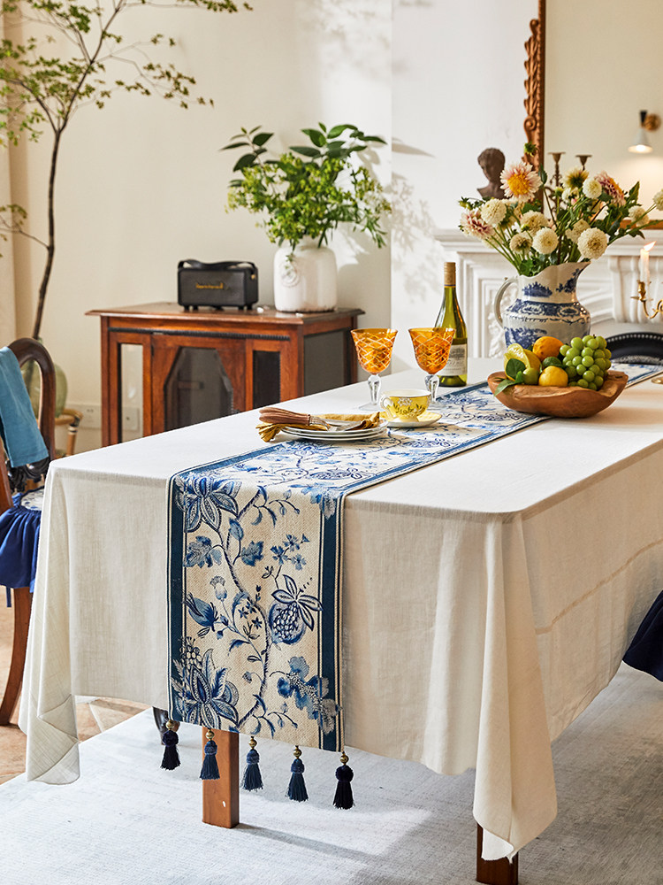 蜡笔派丹若玲珑桌旗复古中式高级感流苏茶旗斗柜茶几盖布床旗定制