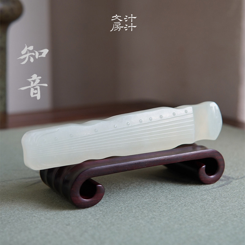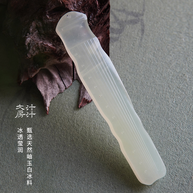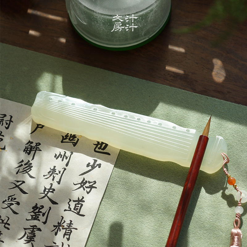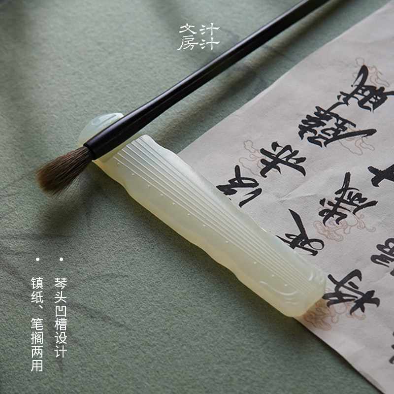 汁汁文房 古琴笔搁镇纸 天然岫玉书法国画专用毛笔架中式文房四宝
