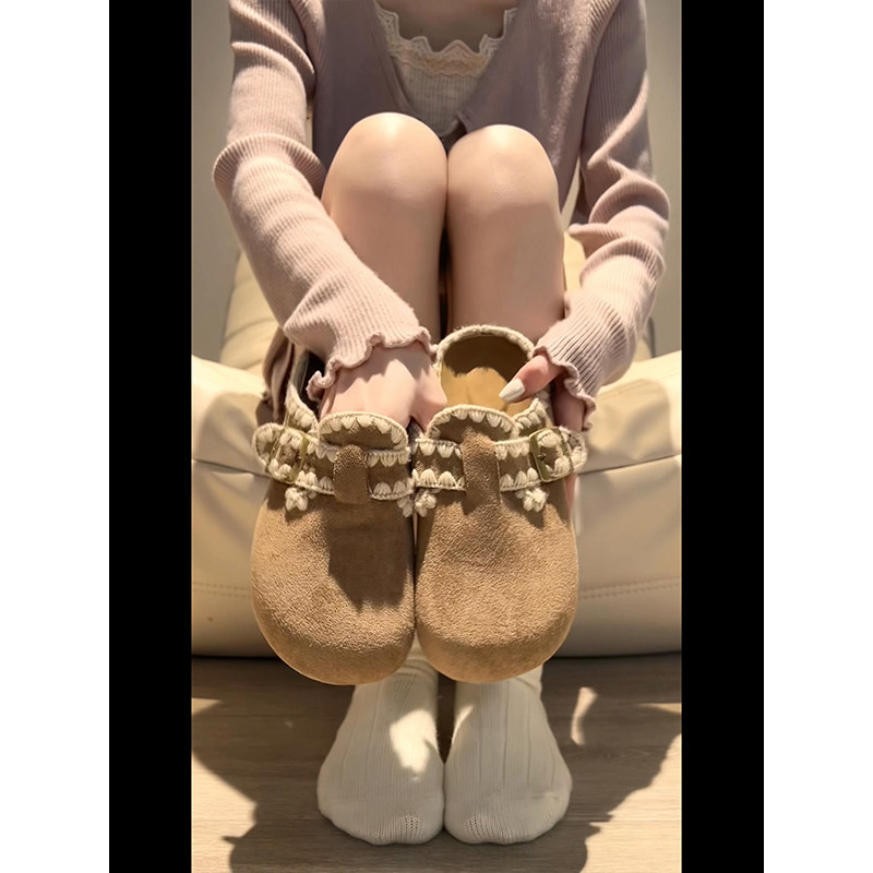 叁叔家~内增高勃肯鞋女加绒秋冬保暖毛毛半拖外穿厚底博肯鞋