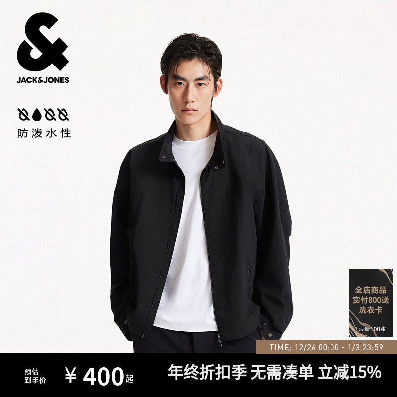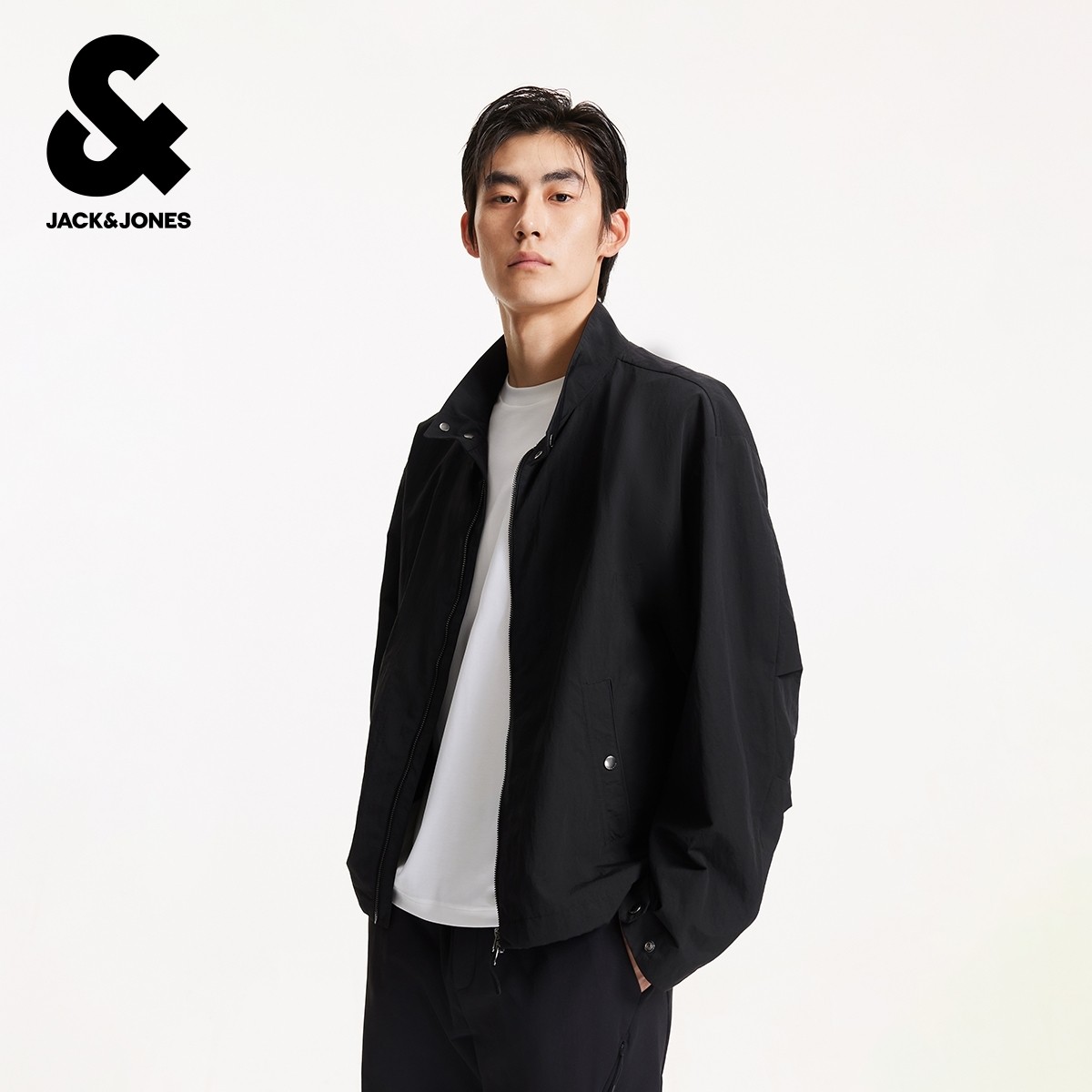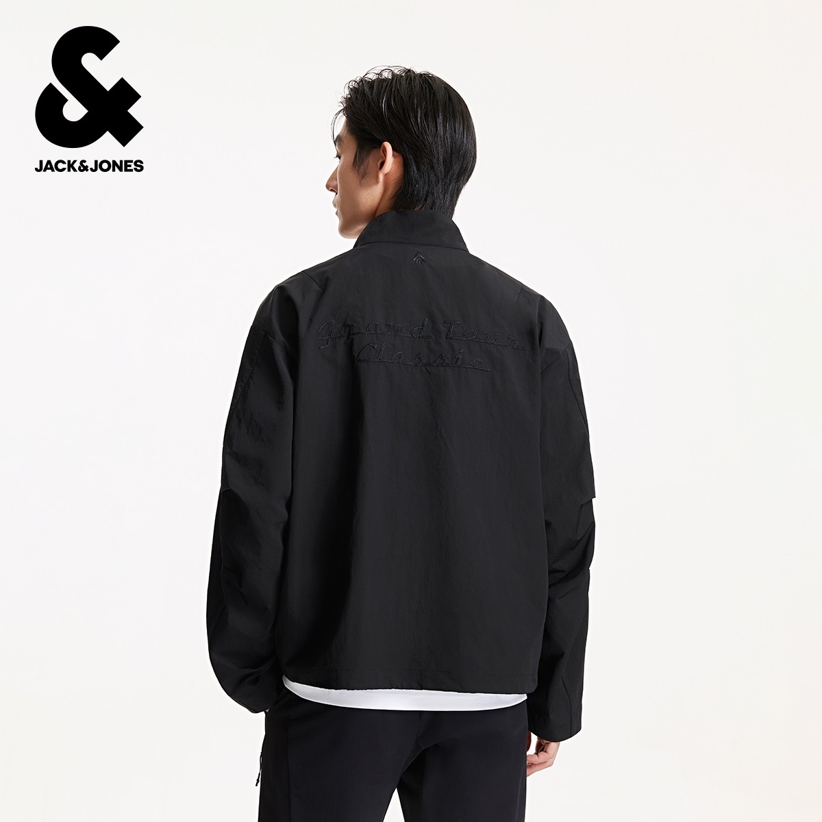 杰克琼斯男装秋季新款精致刺绣商务休闲通勤简约宽松立领夹克外套