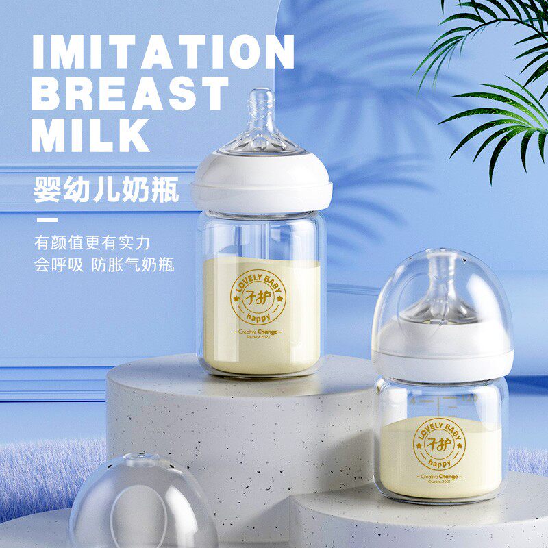 子护新生婴儿防胀气宽口径玻璃奶瓶耐高温仿母乳防呛漏0-2岁正品