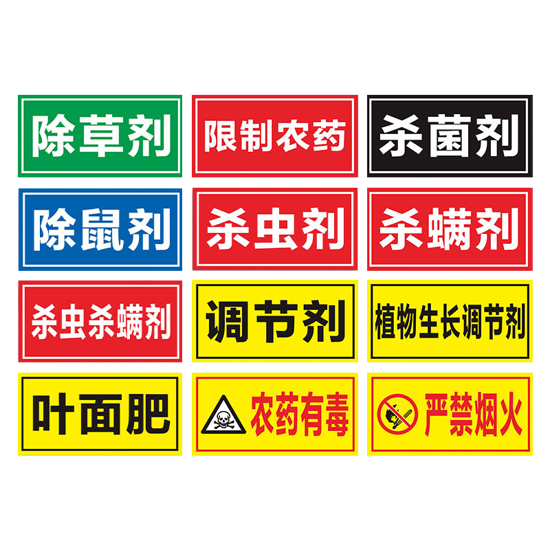 国标颜色农药分类标签全套标识牌农资货架区域分区提示牌杀虫杀菌剂除草剂农药有毒警示标志牌禁止吸烟订制做