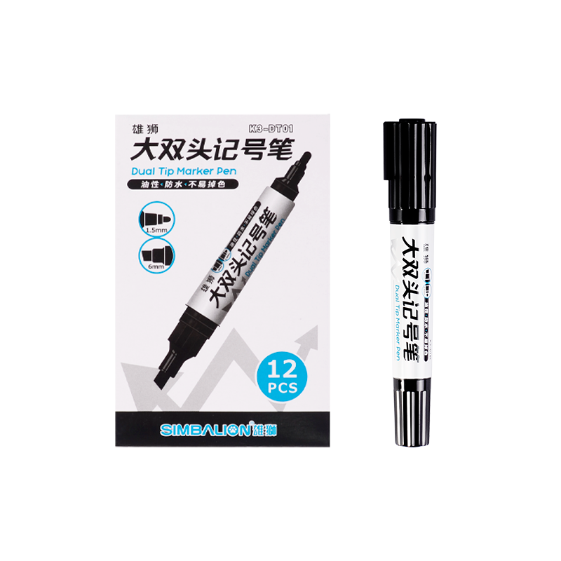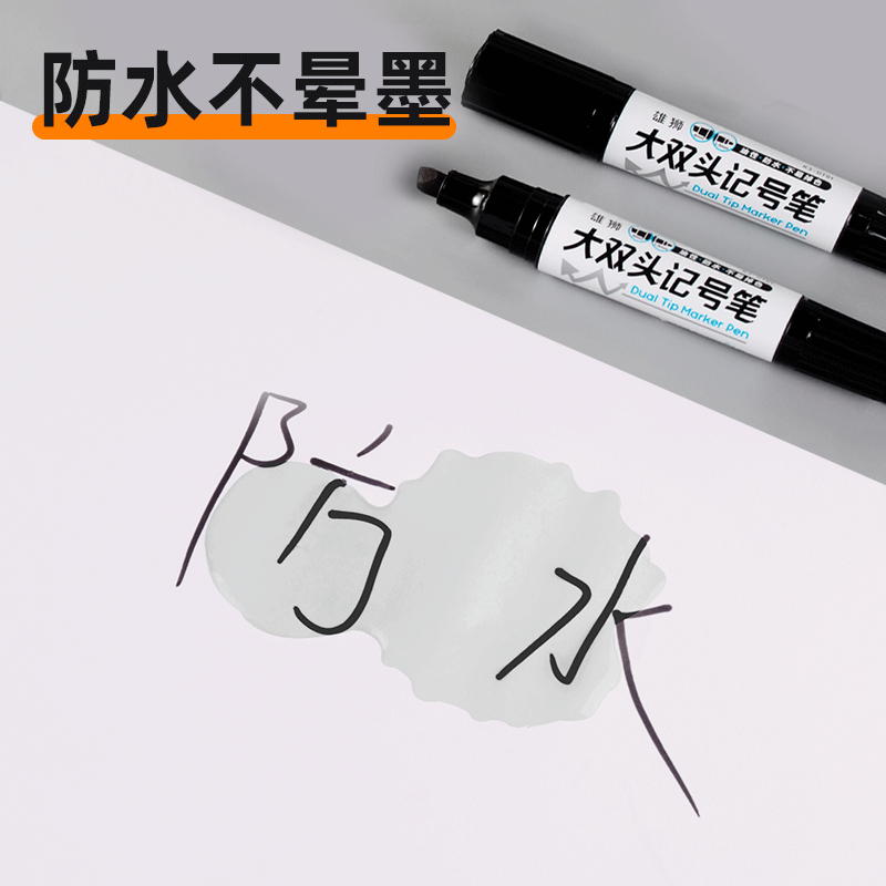 雄狮大双头油性记号笔黑色马克笔大头粗细两头防水勾线笔工地标记