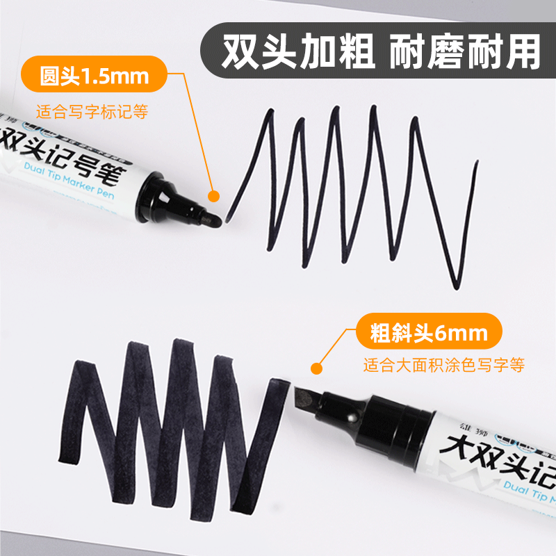 小双头记号笔勾线笔黑色油性速干防水防油不掉色大头马克笔工地美术专用儿童幼儿园小学生绘画描边粗细红蓝水