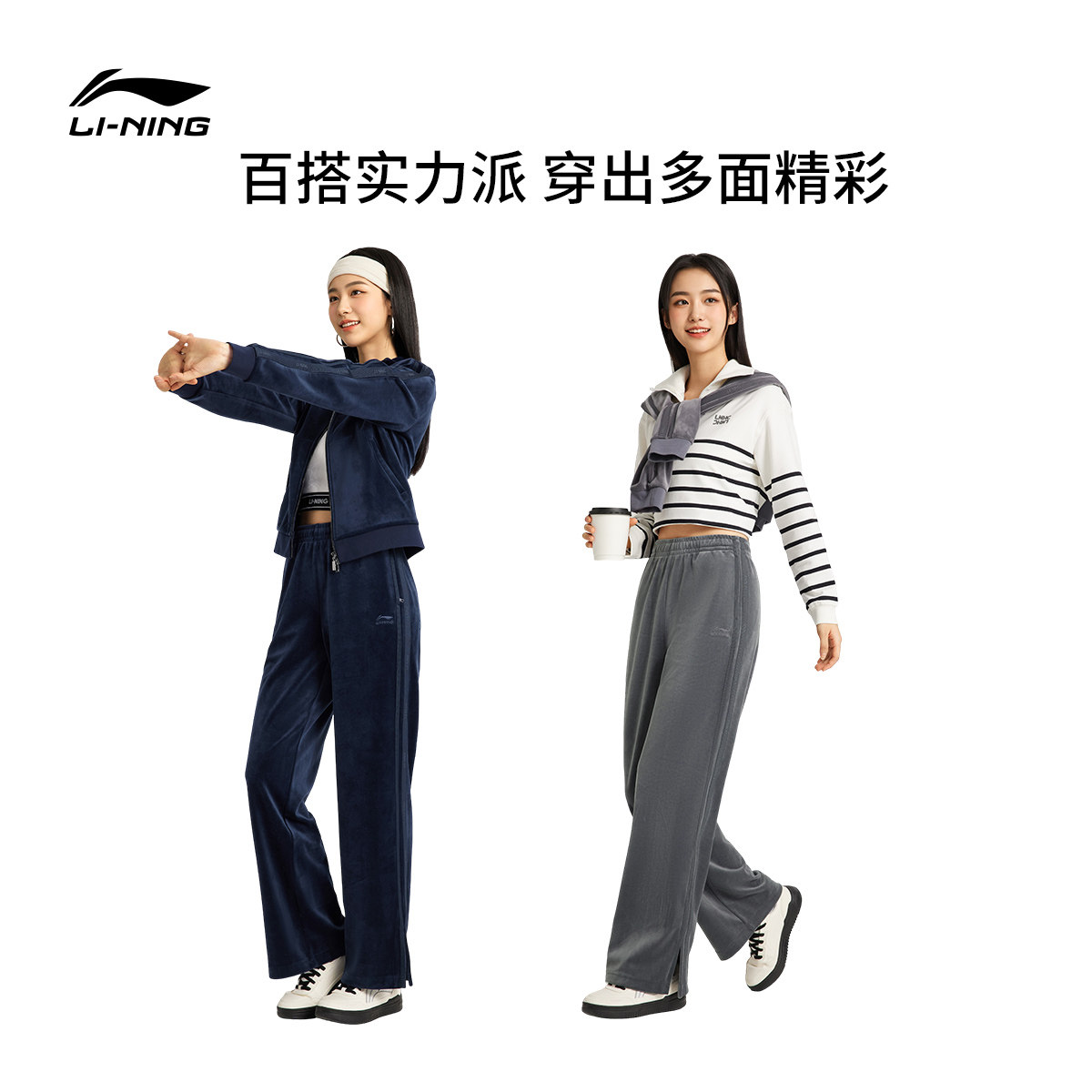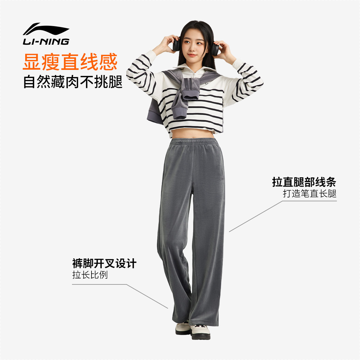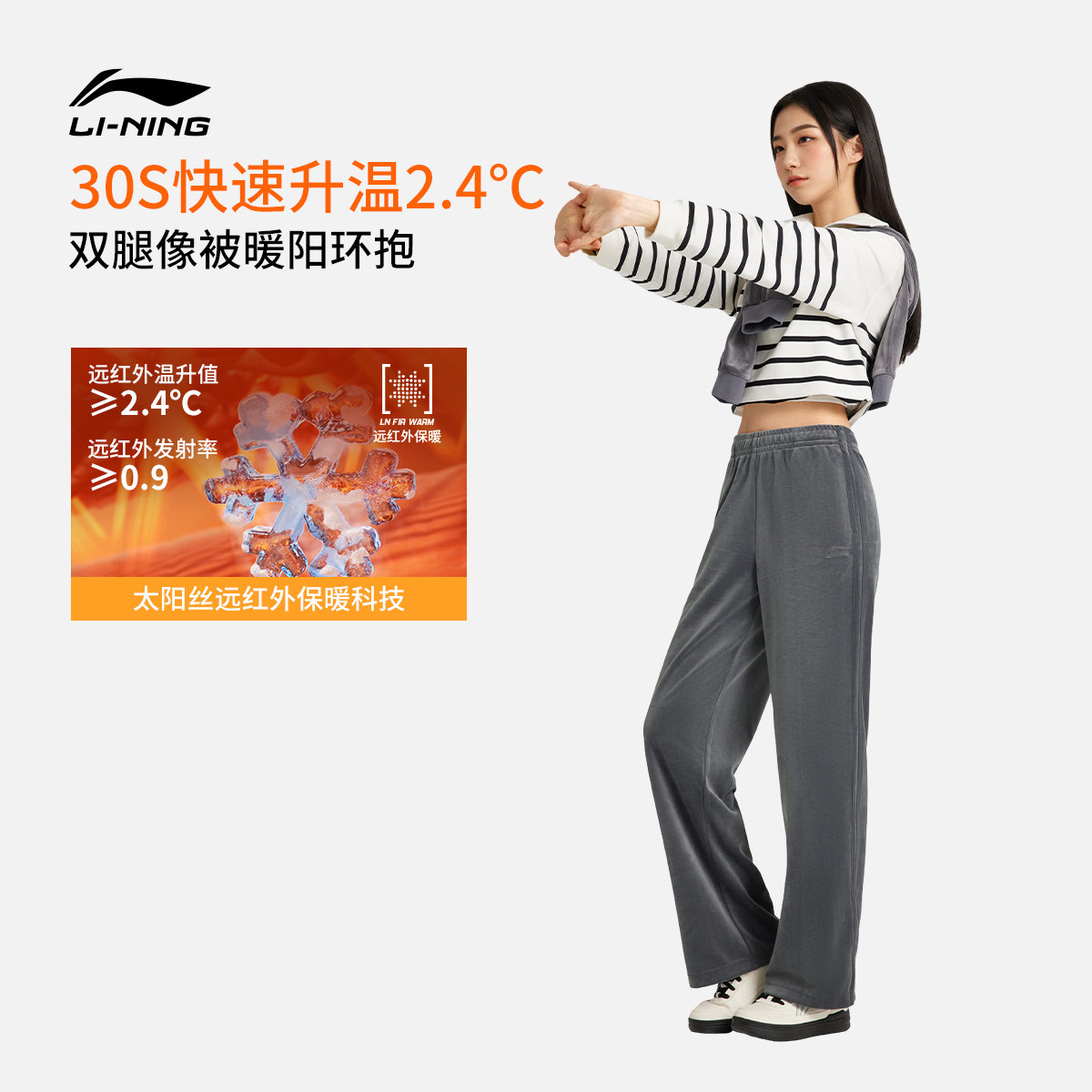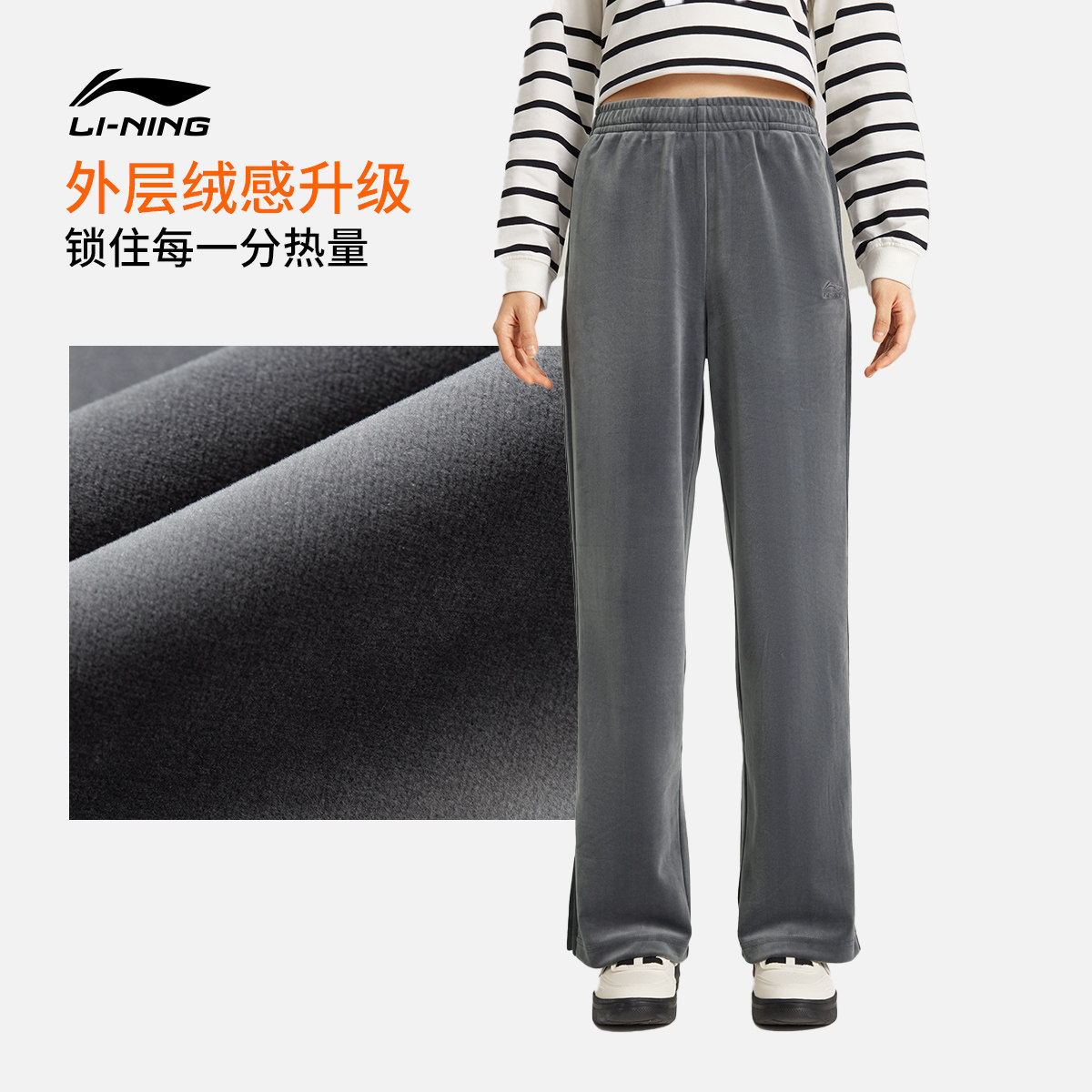 李宁热力裤丨卫裤2025新款裤子直筒宽松冬季休闲裤丝绒运动裤女款