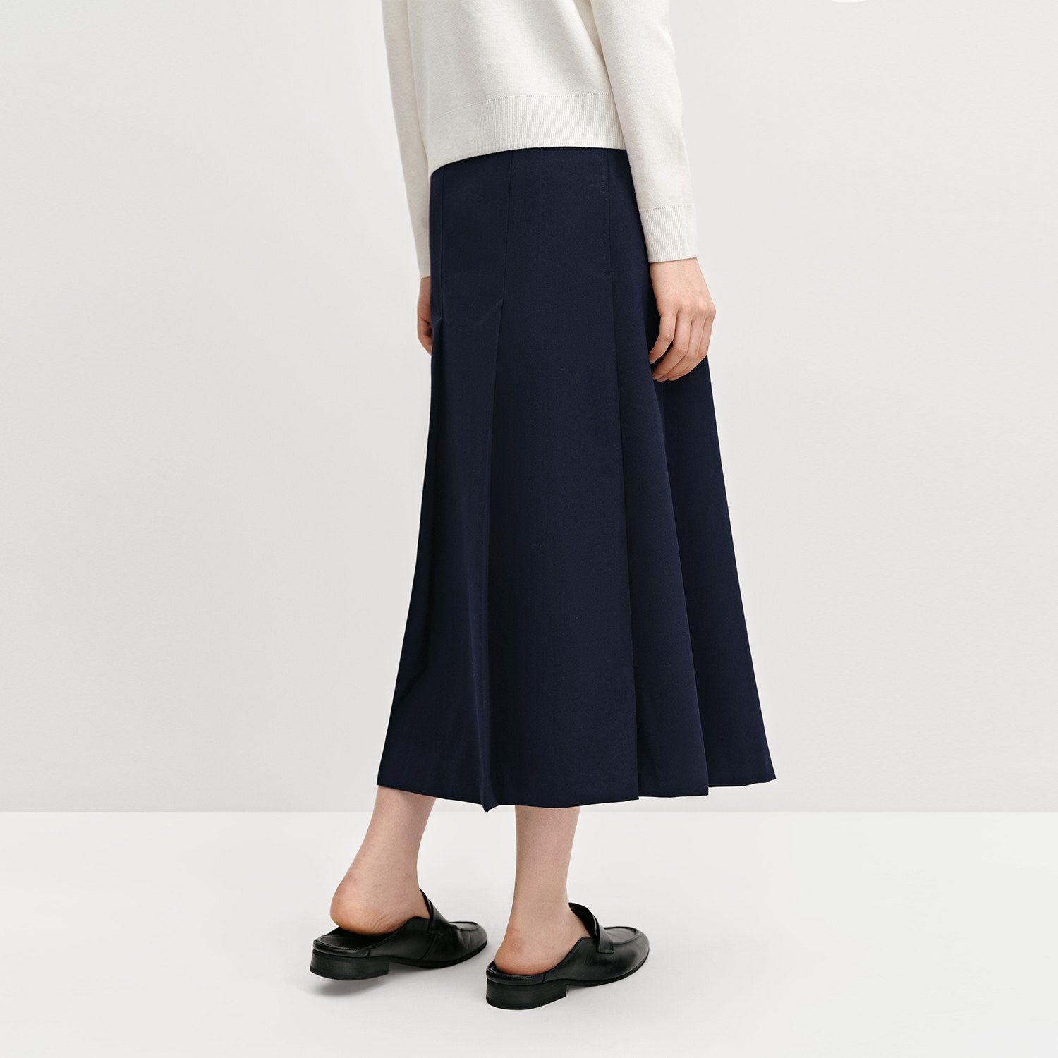 MJ STYLE灰色百褶西装裙女秋冬半身裙高腰休闲大摆a字过膝中长裙