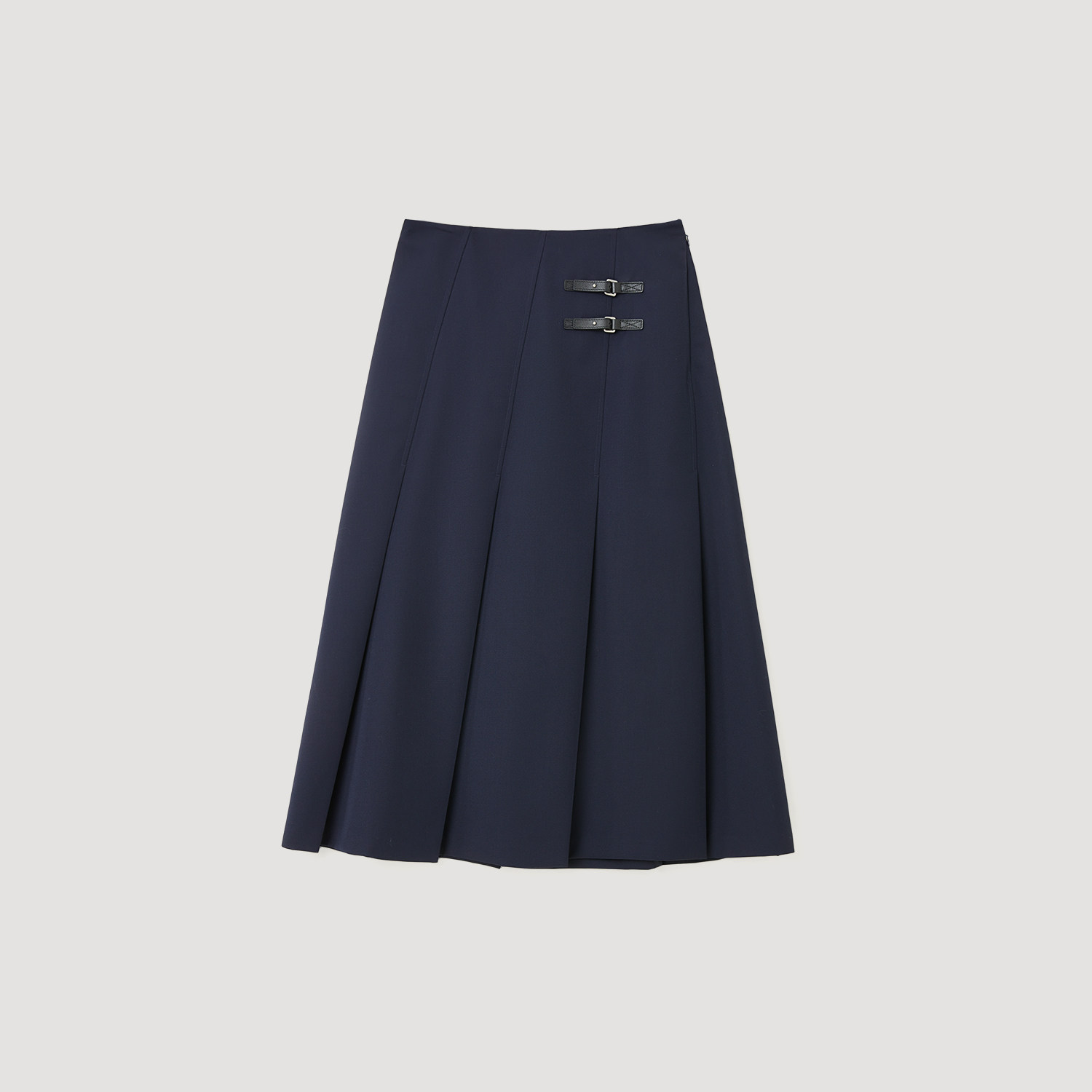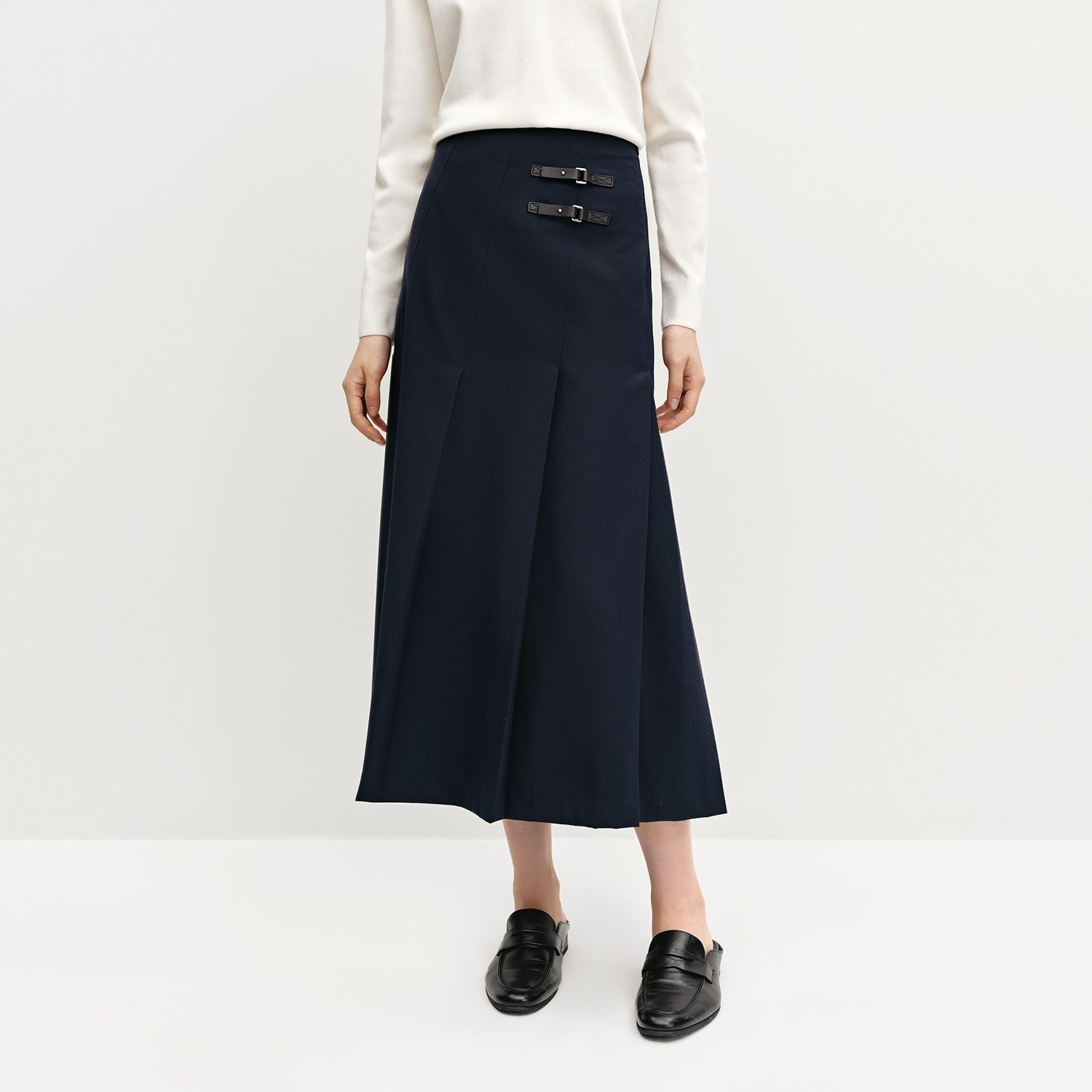OVV秋冬热卖女装简约时髦斜向百褶皮袢装饰半身裙