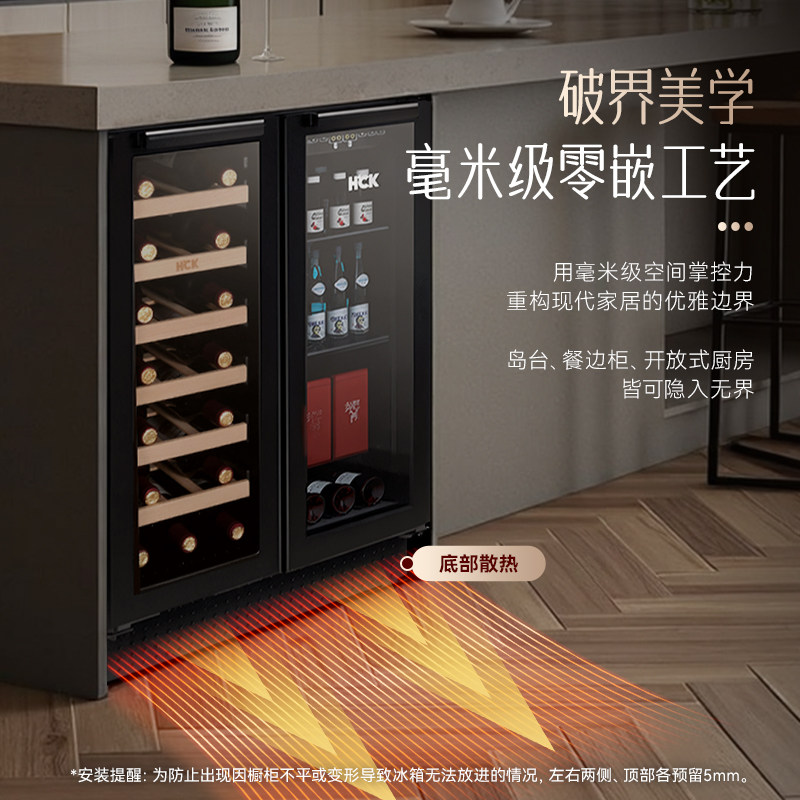 HCK哈士奇超薄零嵌入式冰吧双门红酒柜恒温酒柜小型家用风冷冰箱