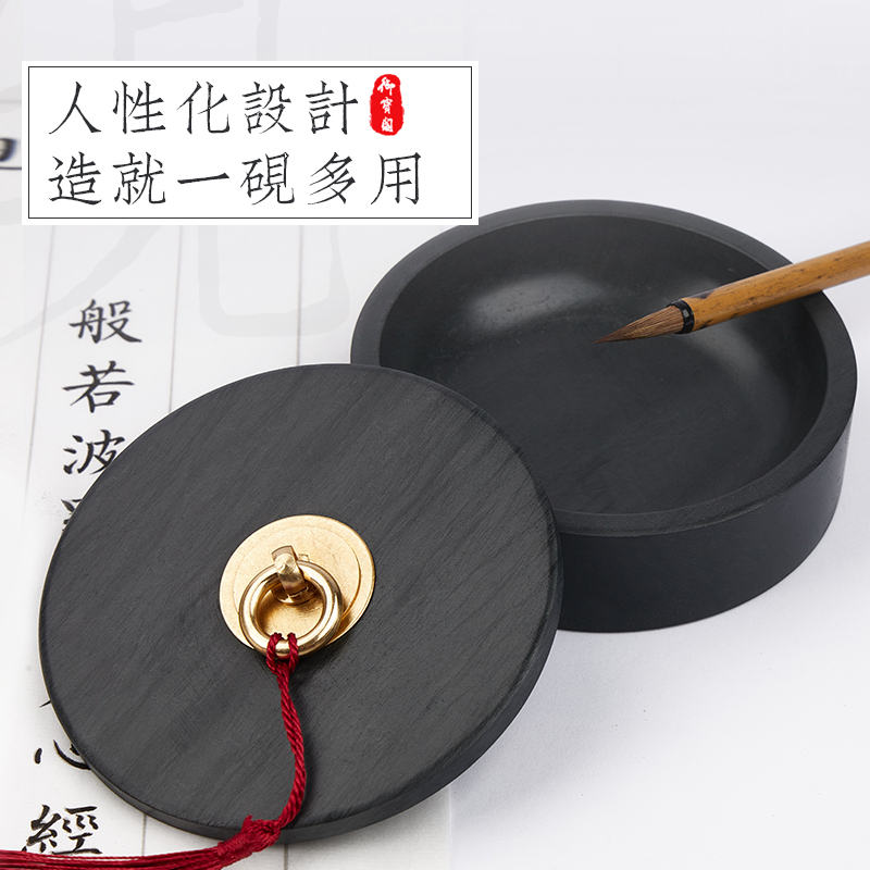 不干墨砚台带盖天然原石书法专用毛笔墨碟墨盘墨池墨砚墨盒墨宝砚墨墨条墨块墨汁墨水歙砚文房四宝书法用品蝶