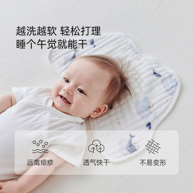 贝肽斯新生儿云片枕头婴儿纯棉纱透气吸汗宝宝0到6个月防吐奶枕巾