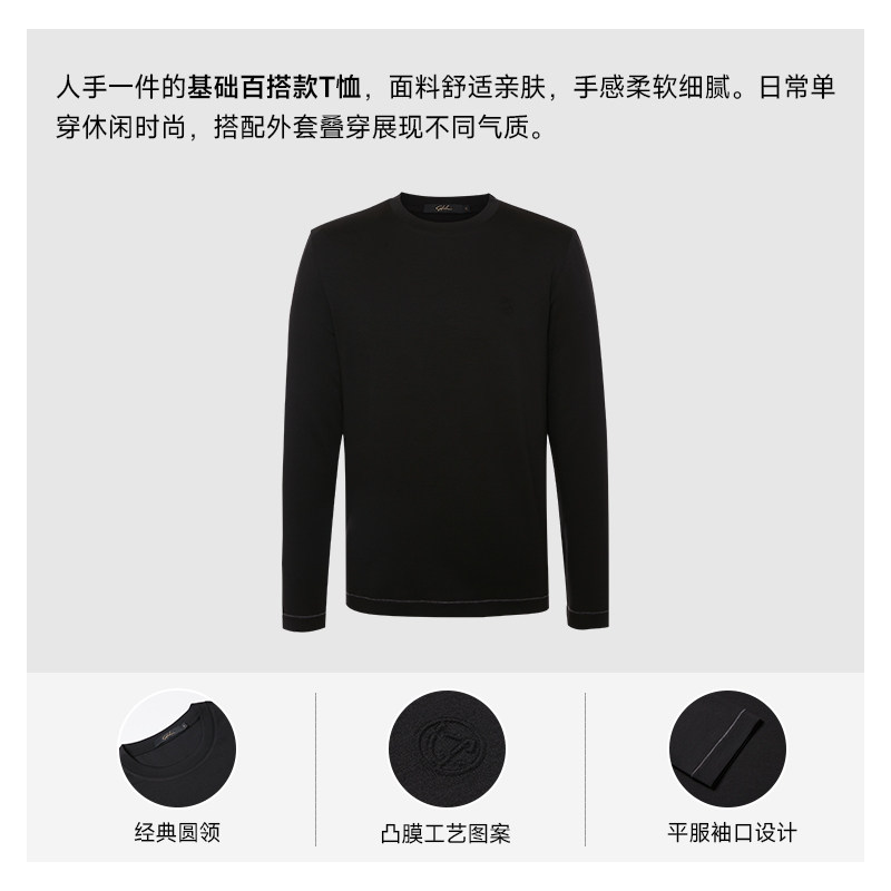 SATCHI沙驰男装男士长袖T恤秋季新款圆领商务休闲黑色打底套衫男