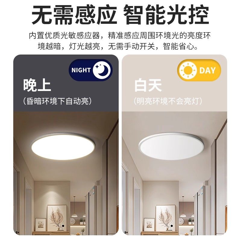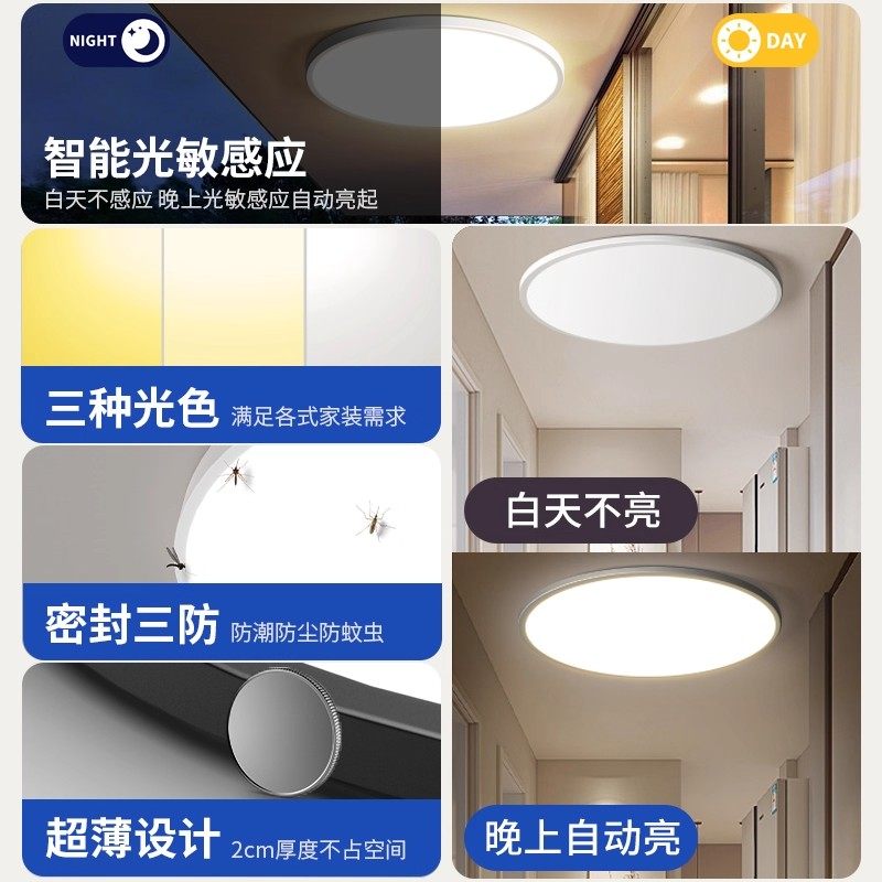 智能纯光控led吸顶灯物业过道三防感应晚上自动常亮白天自动熄灭