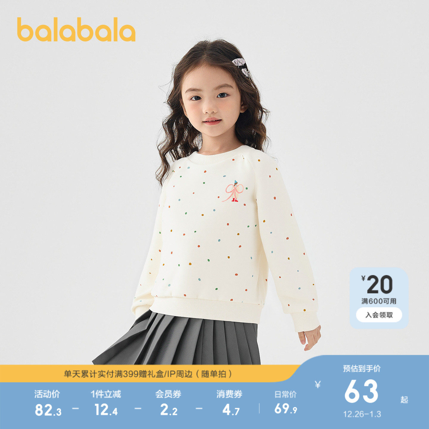 巴拉巴拉童装儿童卫衣女童秋冬装拼色假两件上衣加绒内搭甜美潮流