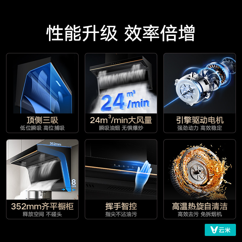 云米抽吸油烟机厨房顶侧大吸力油烟机燃气灶二件套烟机灶具套装
