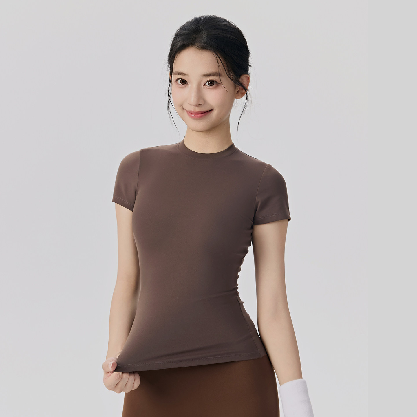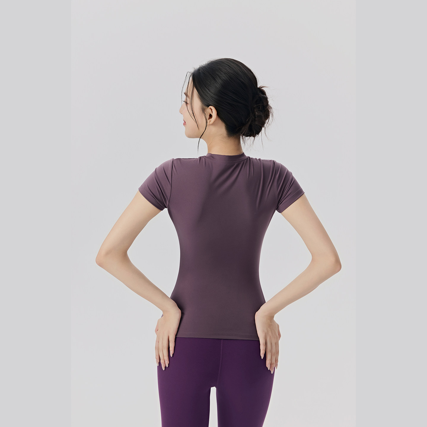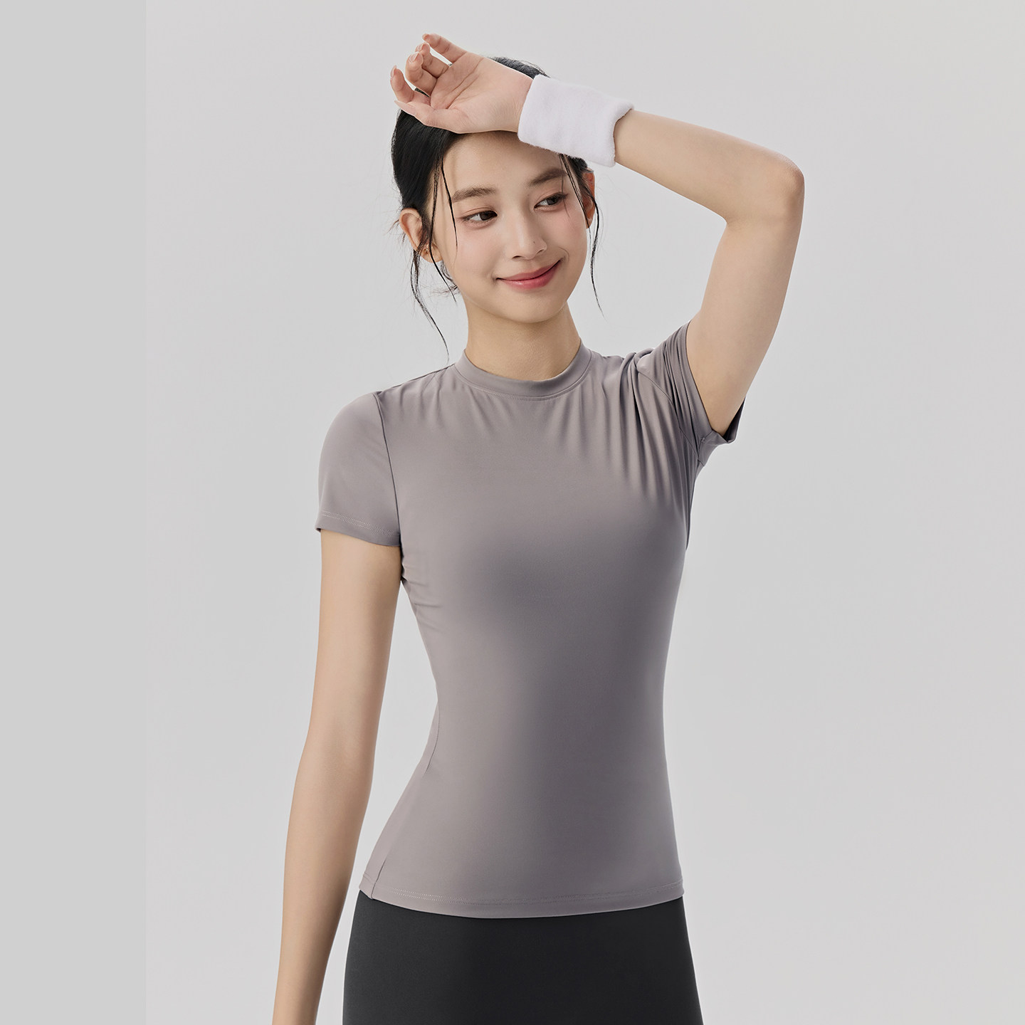 佑美瑜伽服上衣女新款圆领紧身短袖T恤普拉提修身跑步运动健身服