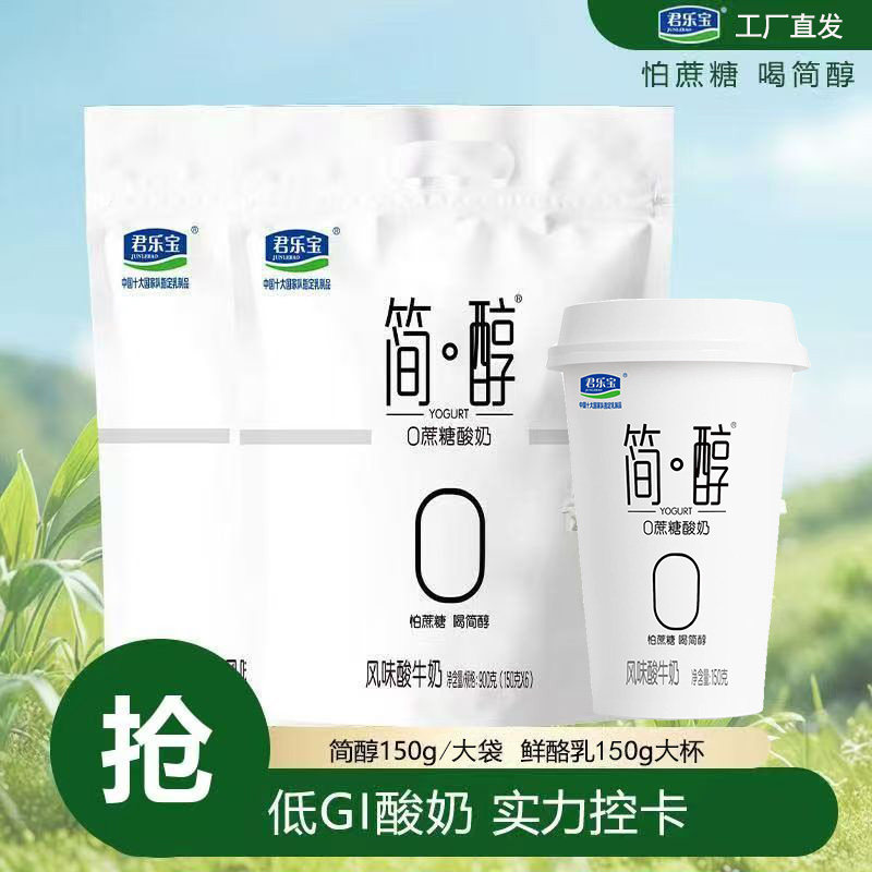 新品上市君乐宝简醇0添加蔗糖酸奶鲜酪乳150g杯装袋装风味酸牛奶