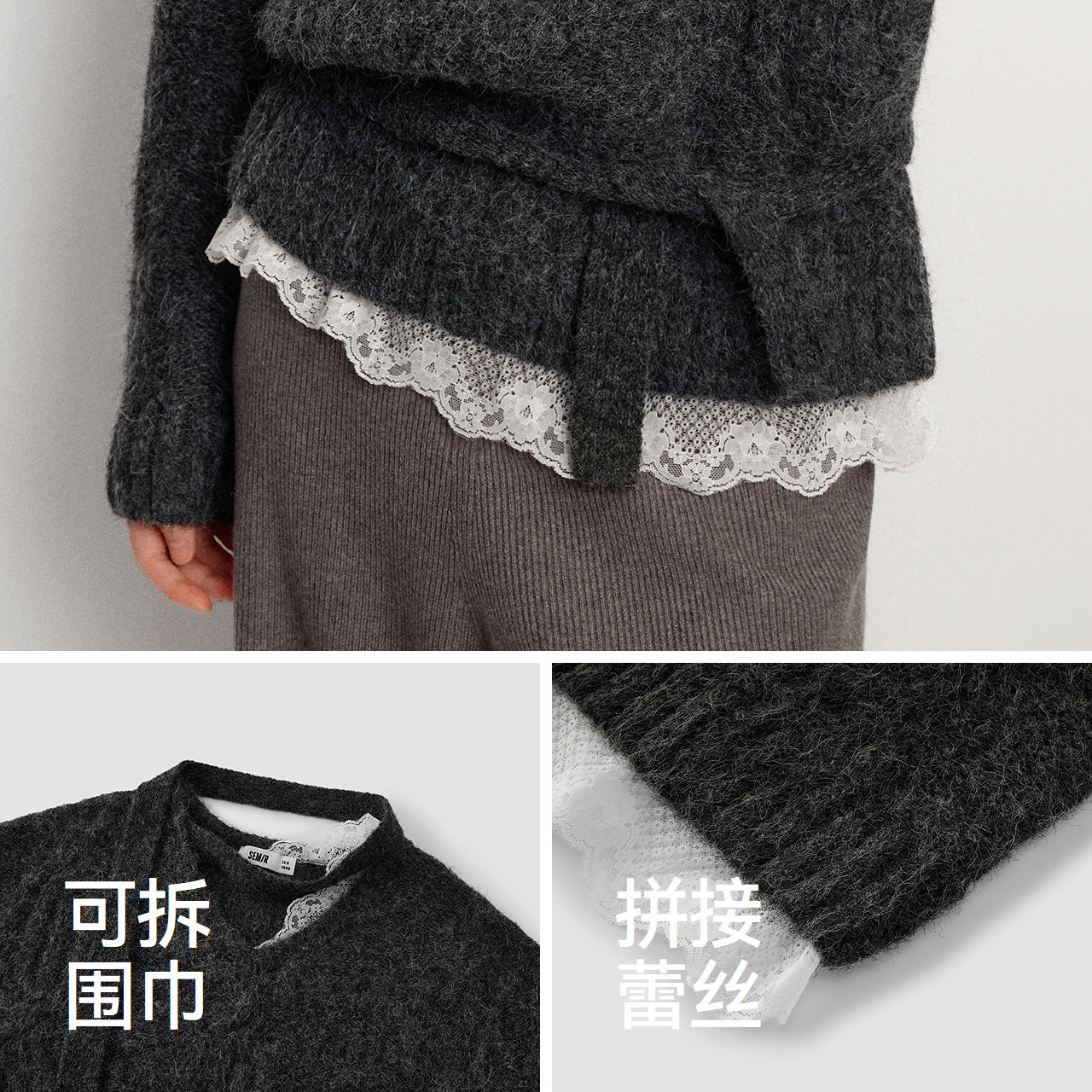 可拆卸围巾,优雅又添小性感 温柔蕾丝花边