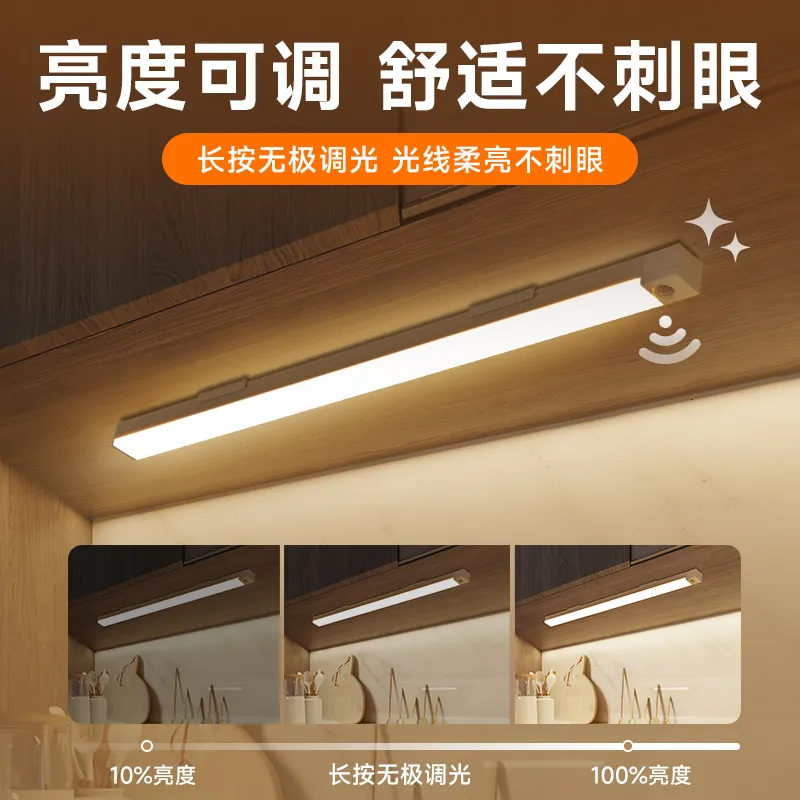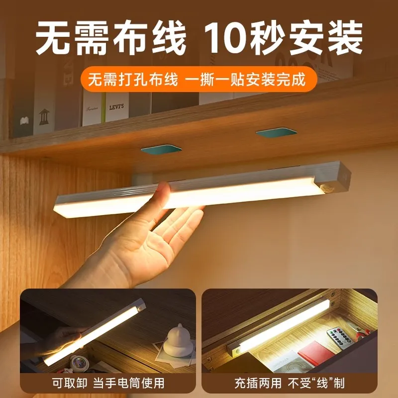 长条感应灯条充电灯带免布线磁吸无线自粘橱柜床头灯厨房衣柜床边