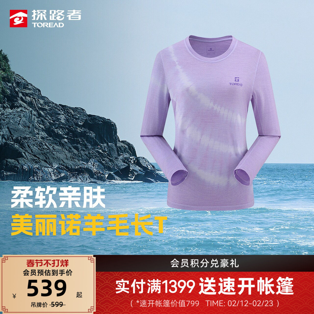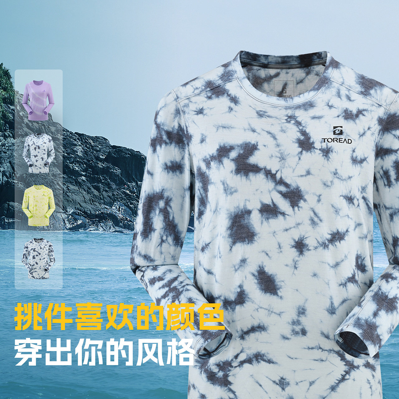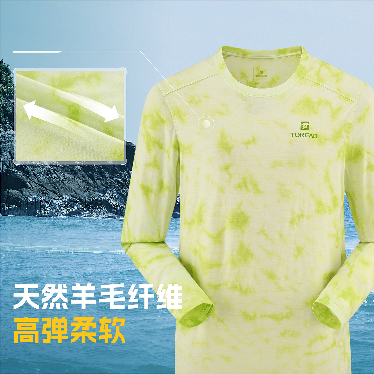 探路者女式羊毛长T天然美丽诺羊毛吸湿快干弹力扎染户外长袖T恤男