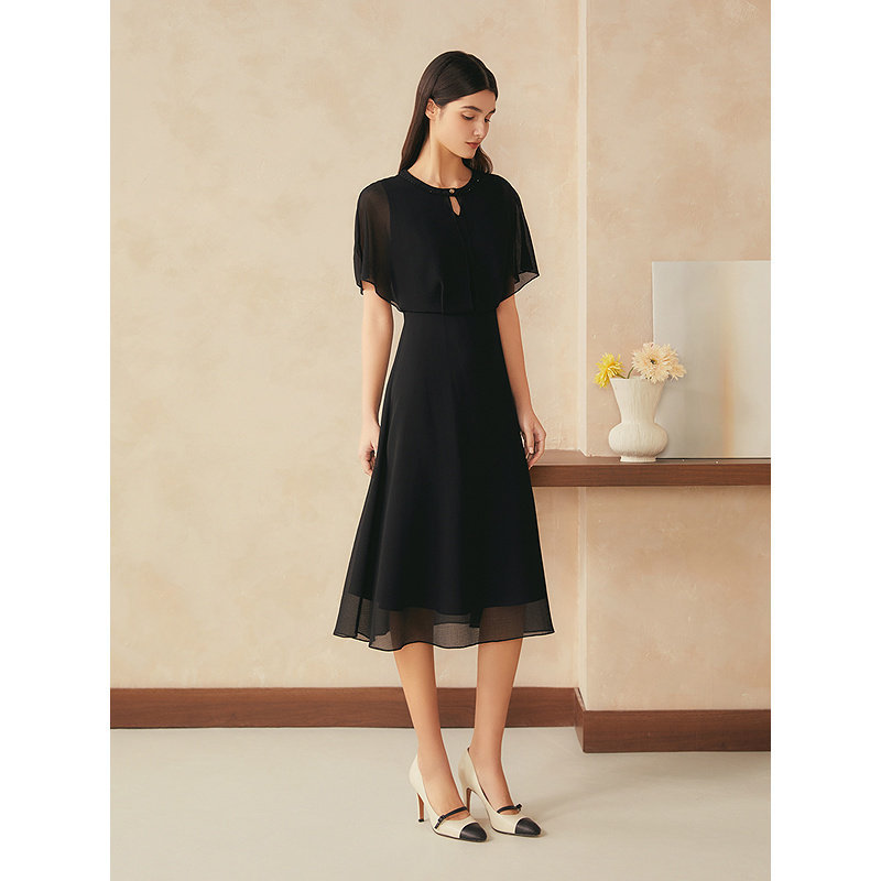 芝美日禾 重工手工镂空无袖气质连衣裙浪漫法式复古小个子