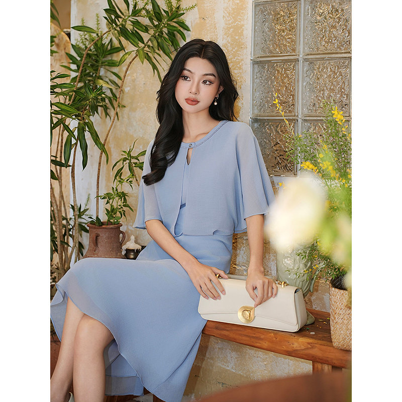 【周末花园】YINER音儿专选2025夏季新款假两件海洋泡泡纱连衣裙