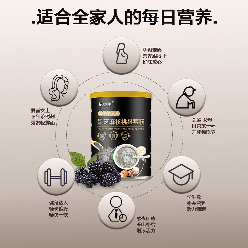 黑芝麻糊核桃黑豆代餐粉饱腹营养早餐食品即食速食冲饮黑米桑葚