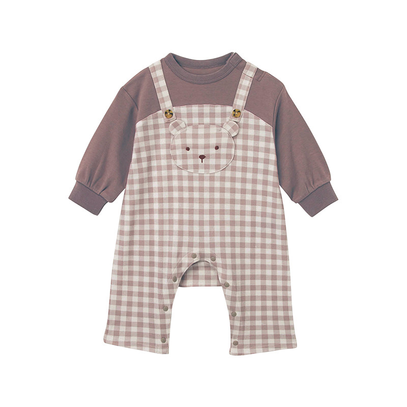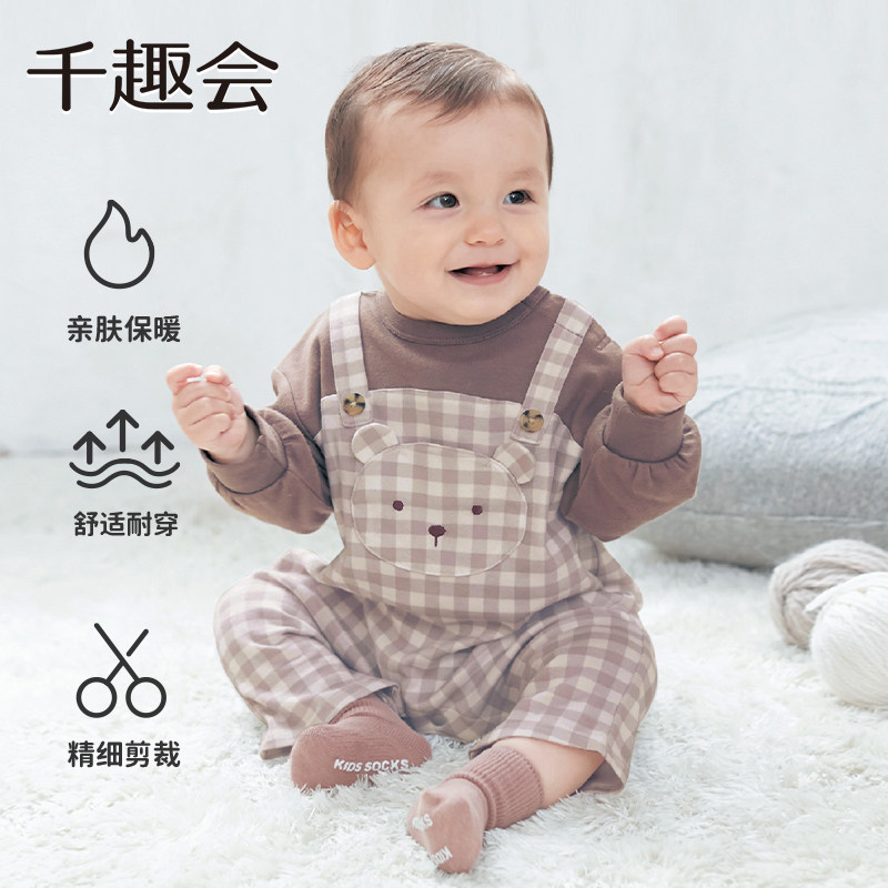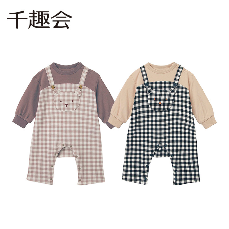 千趣会童装婴幼儿小熊叠穿风背带裤长袖棉质连体衣