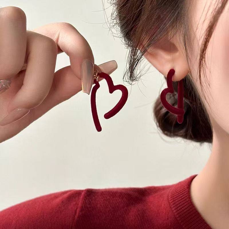 999纯银耳针耳环圈圈大圈秋冬红色耳饰女耳圈高级感轻奢素圈耳夹