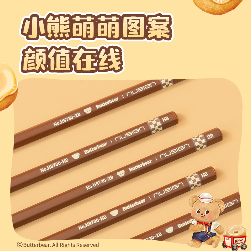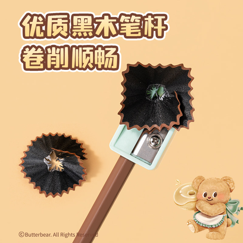 得力黄油小熊联名黑木铅笔十支装