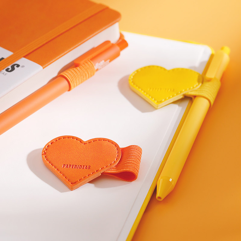 自粘式心形皮质笔插笔环黏贴通用手帐本配件